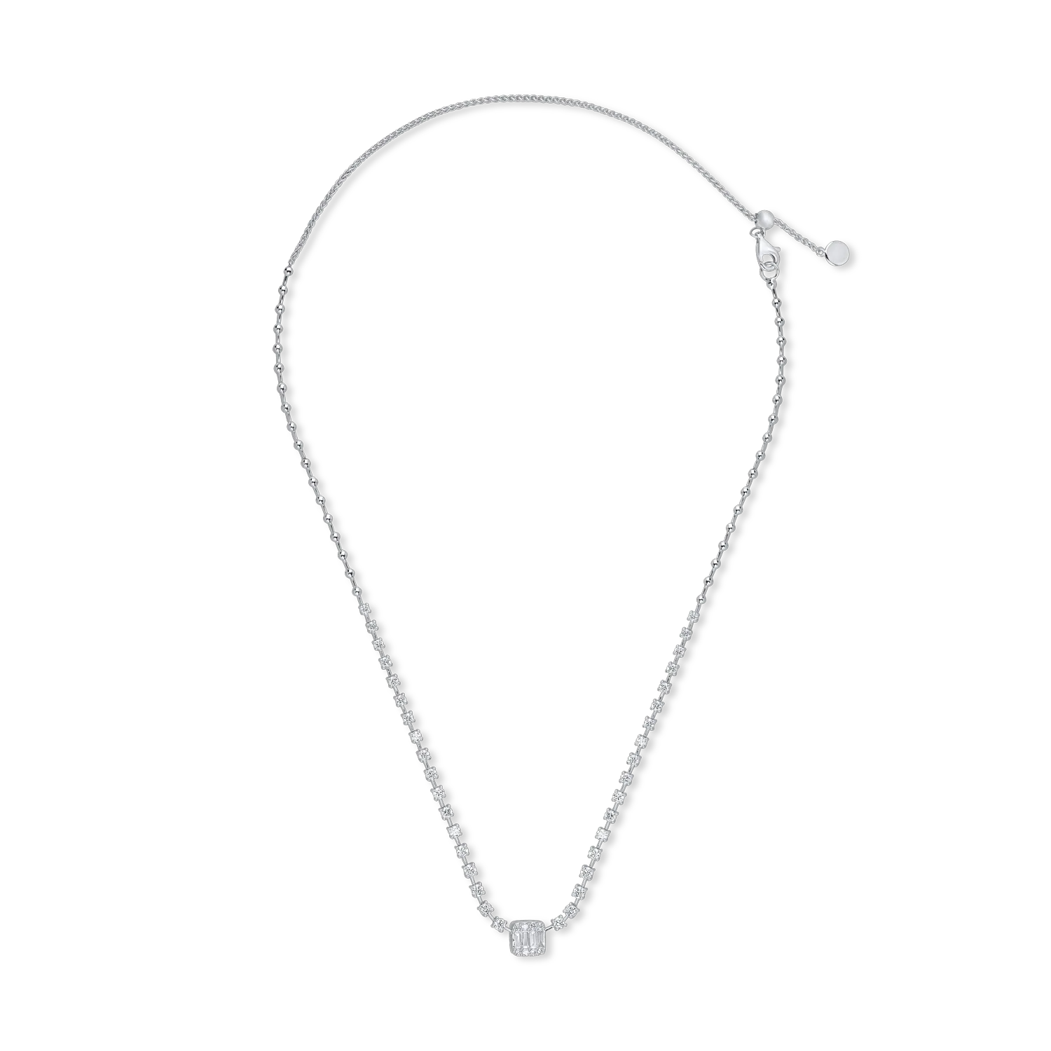 Colier tennis din aur alb cu pandantiv cu diamante baguette si rotunde de 1.6ct