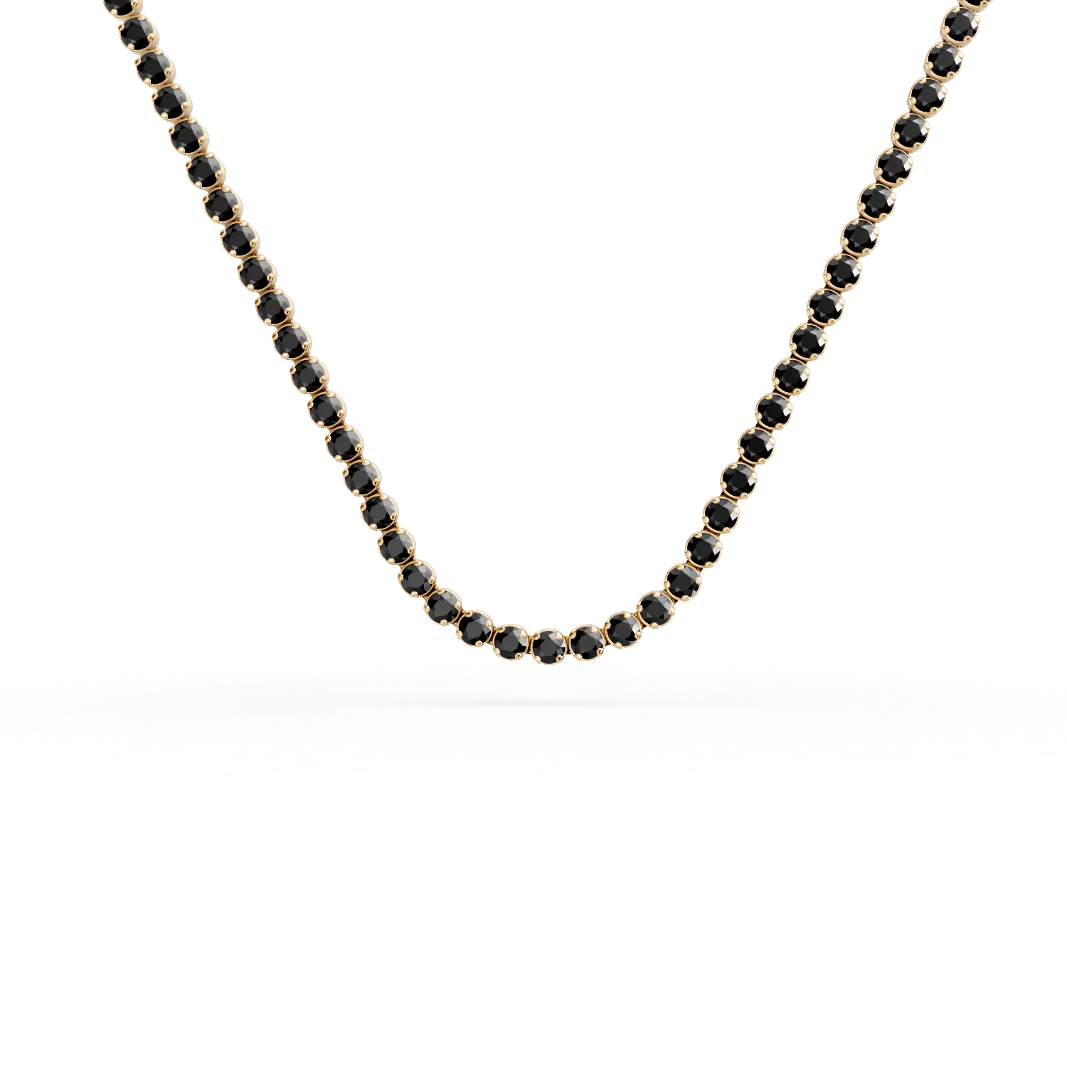 Gratie si frumusete – toate aceste elemente vorbesc despre tine. Cu acest colier tennis din aur galben cu zirconii negre vei avea acel look demn de revistele de moda. Redescopera-ti energia debordanta cu bijuteriile TEILOR.