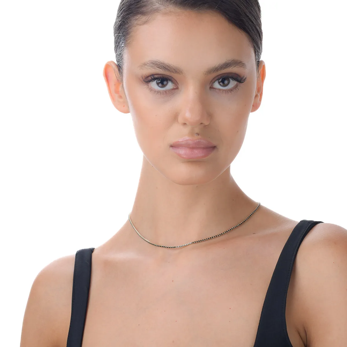 Fii fermecatoare fara prea mult efort. Acest colier tennis din aur galben cu zirconii negre a fost realizat pentru a-ti evidentia latura artistica si pasiunea pentru piesele puternice. Mai mult decat un accesoriu de efect. Mai mult decat o simpla bijuterie.