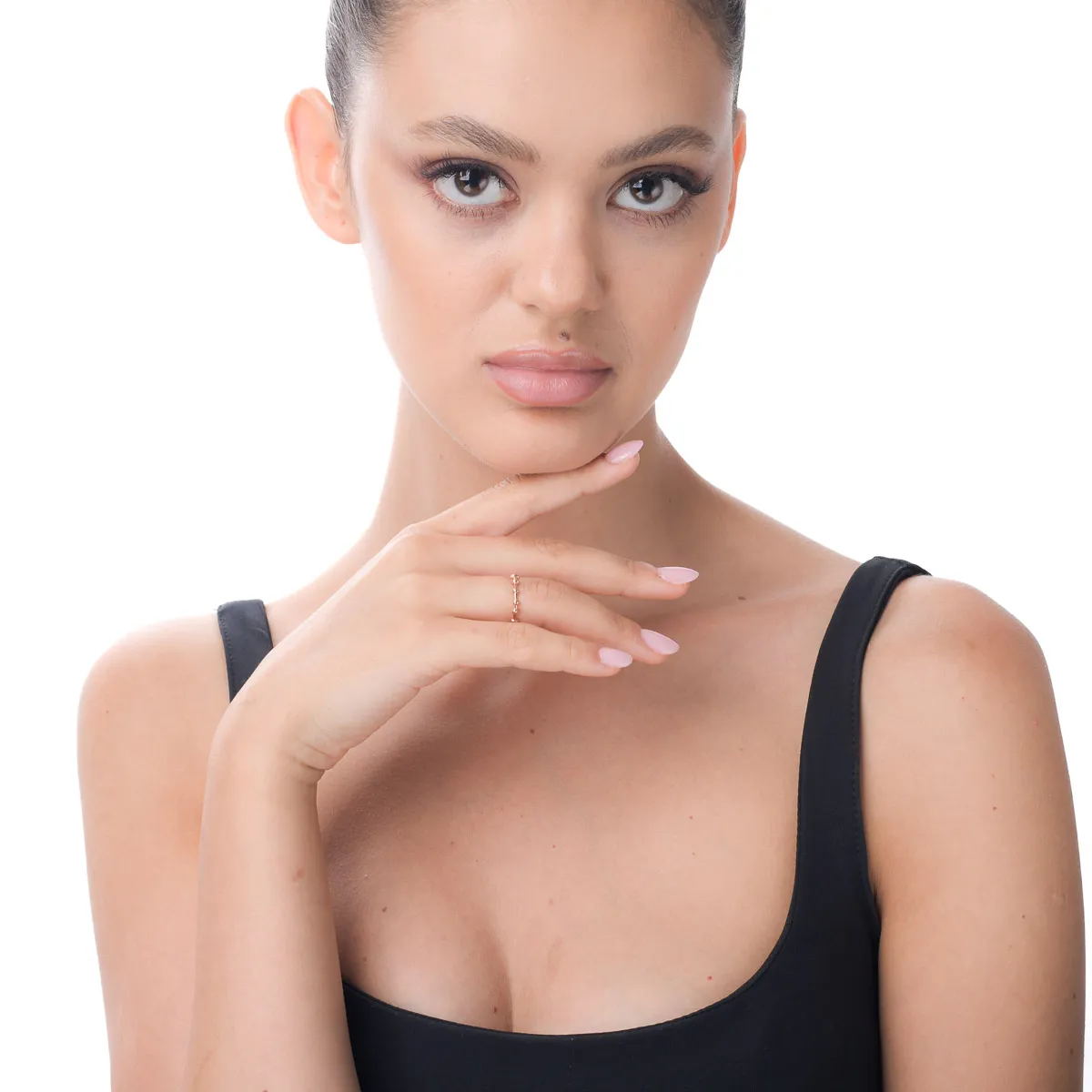 Exista bijuterii care te cuceresc de la prima vedere. Acest inel cu bilute din aur roz poate accesoriza un stil minimalist sau unul complex, pentru acel detaliu special. O piesa care va sublinia unicitatea outfit-urilor tale.