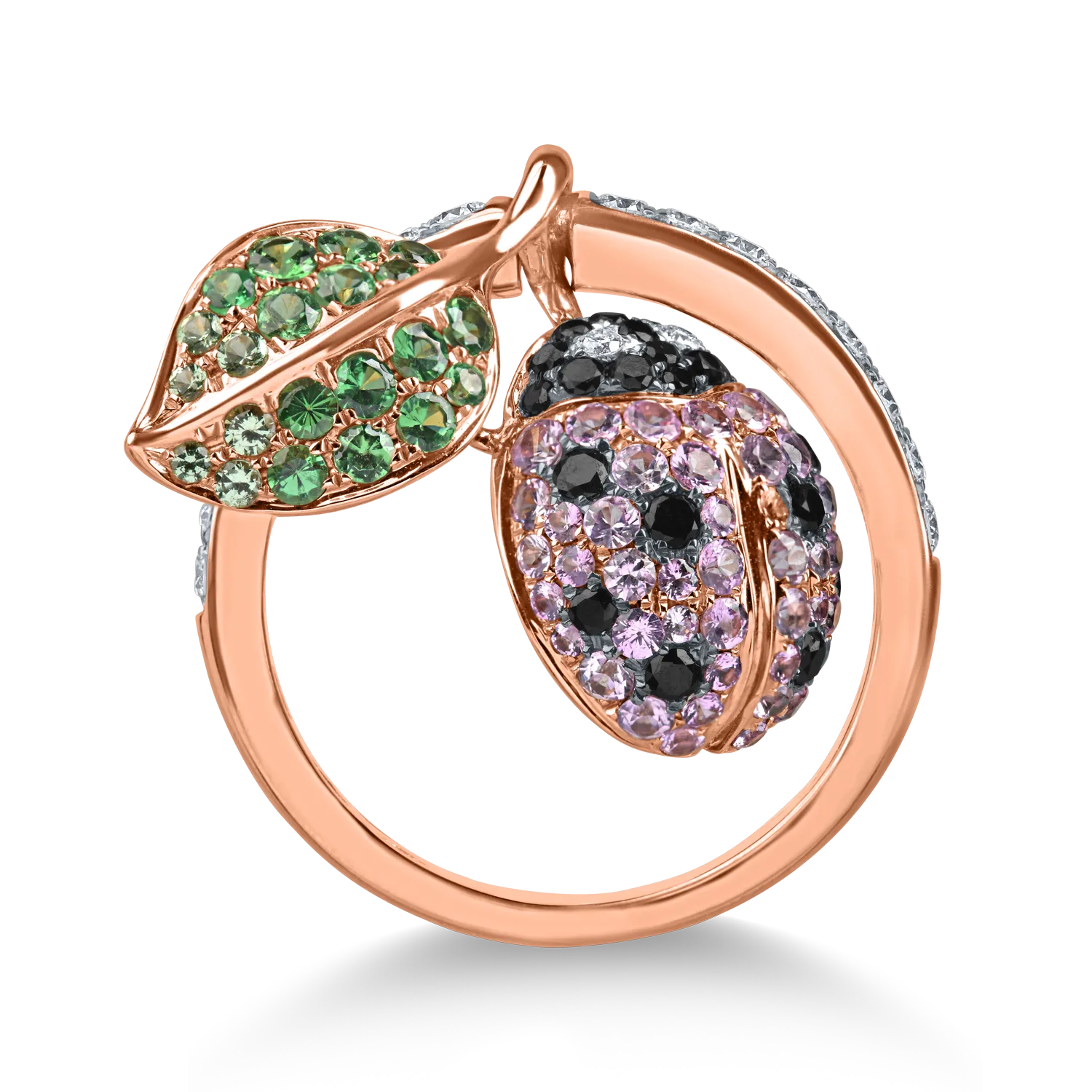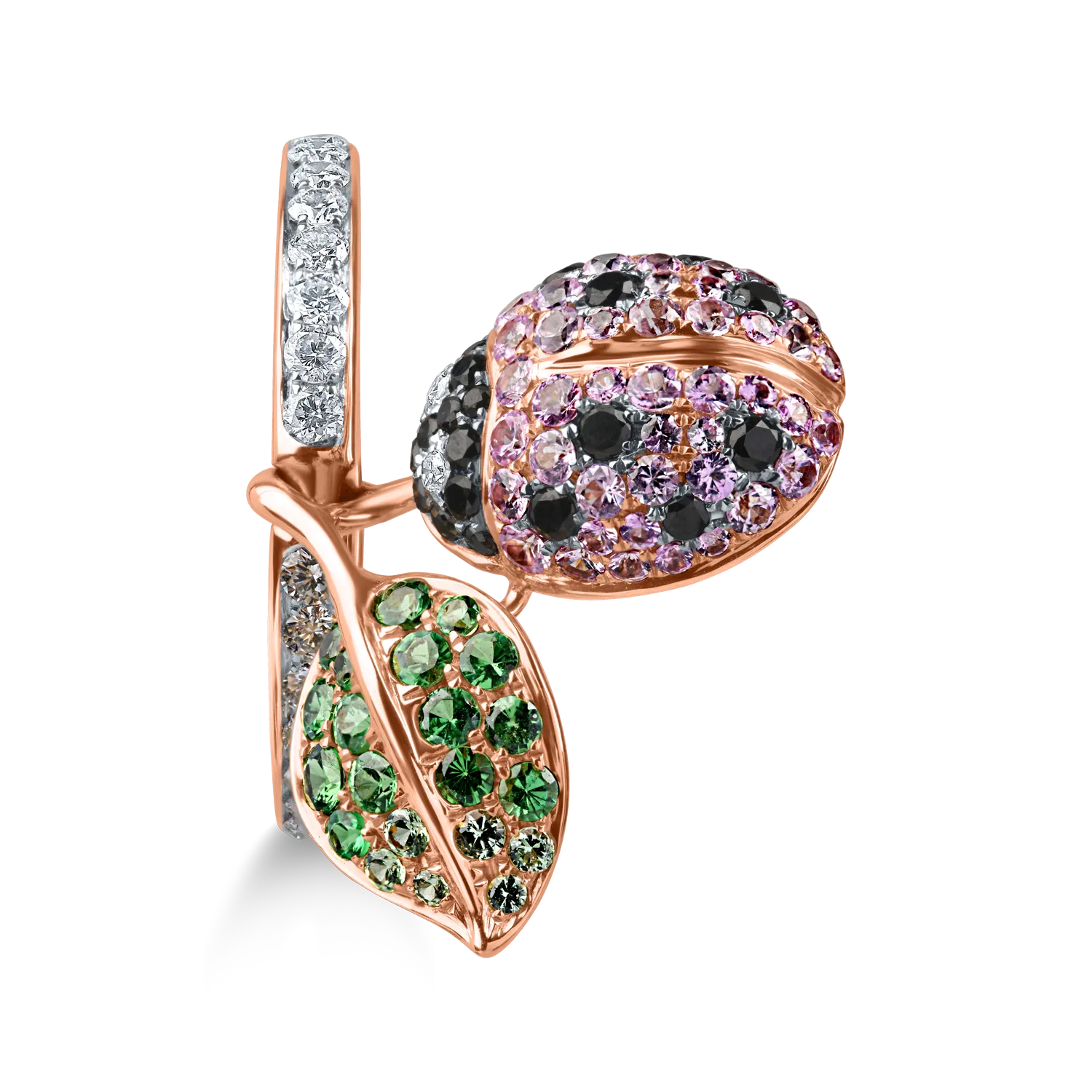 Inel cu buburuza din aur roz cu pietre pretioase de 1.6ct