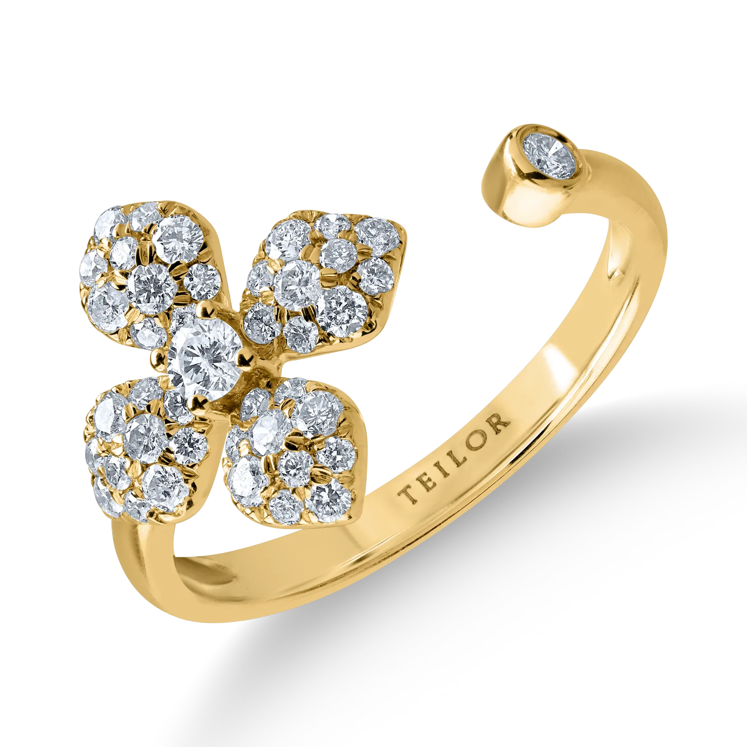 Inel cu floare din aur galben cu diamante de 0.51ct