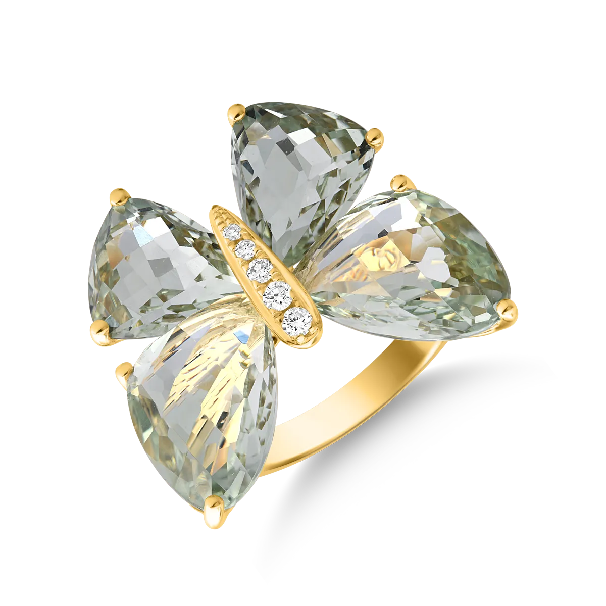 Inel cu fluture din aur galben cu ametiste verzi de 11.7ct si diamante de 0.07ct