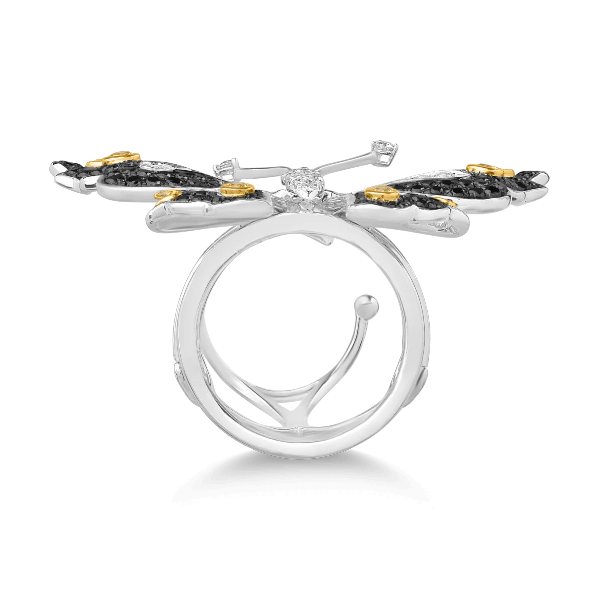 Inel cu fluture si floare din aur alb cu pietre pretioase de 3.53ct