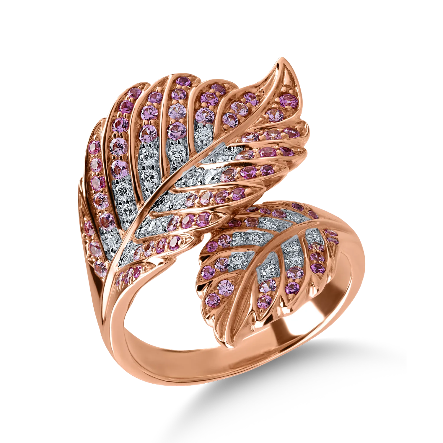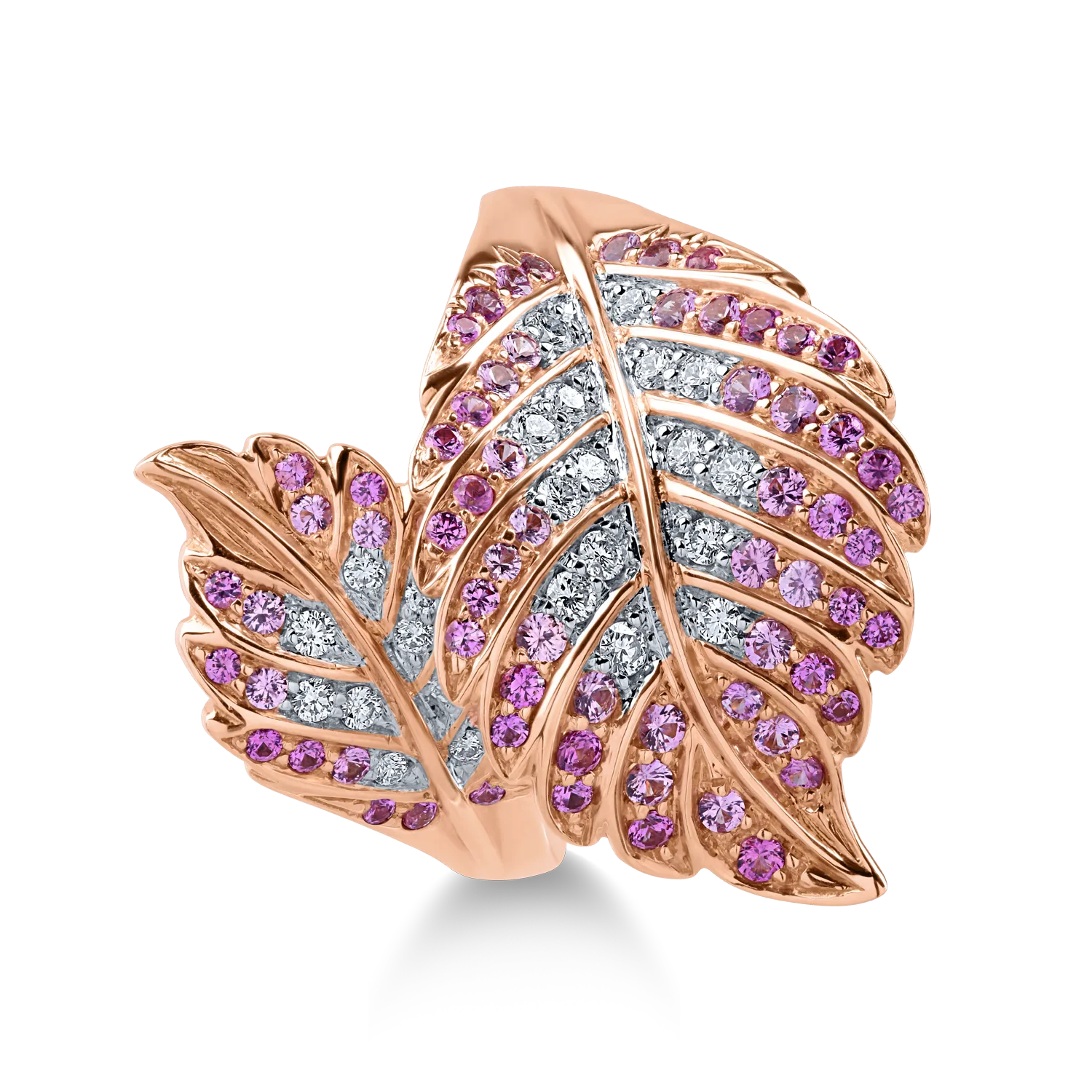 Inel cu frunza din aur roz cu diamante de 0.22ct si safire roz de 0.67ct