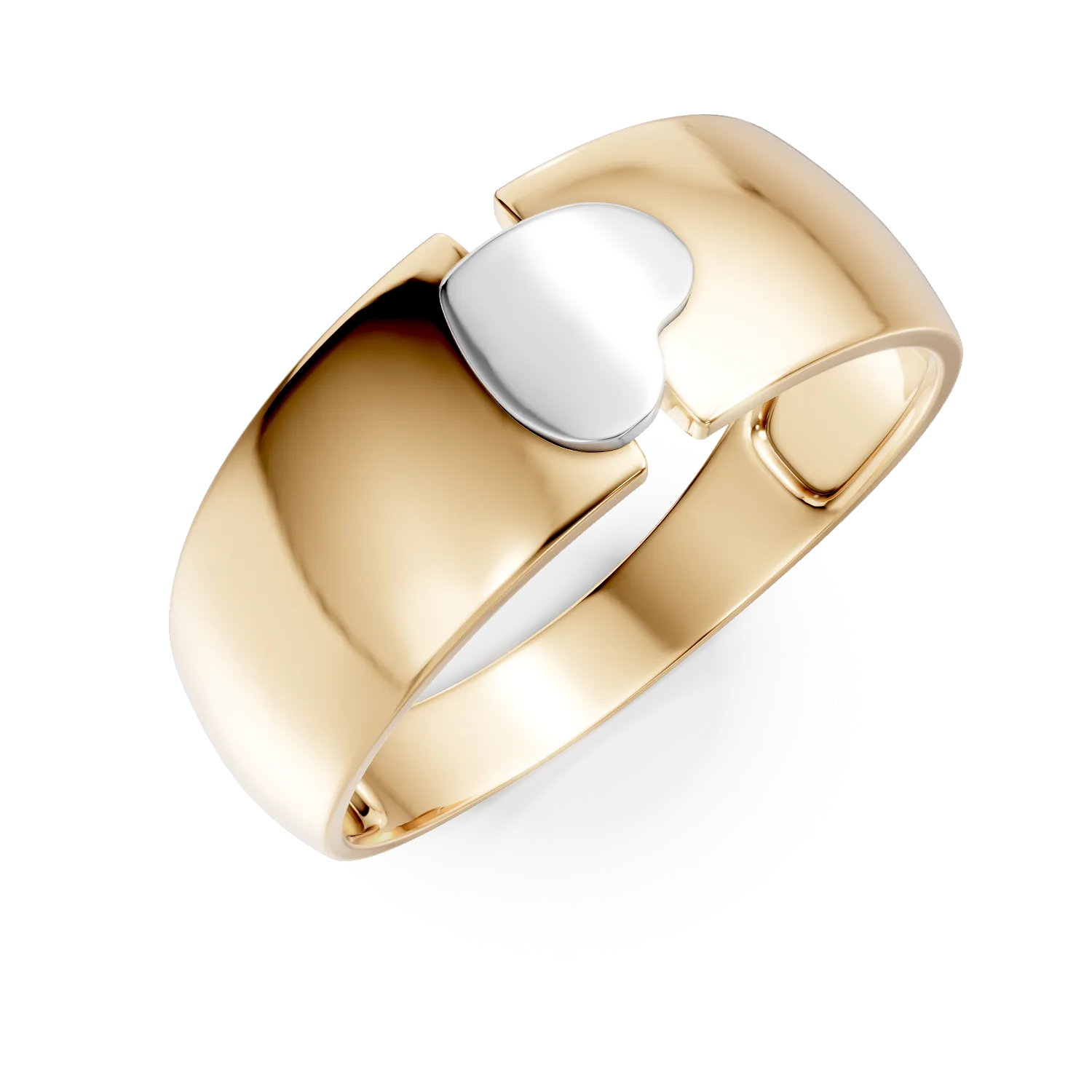 Feminitate si atitudine. Cu un design original, acest inel cu inima din aur alb-galben te poarta intr-o calatorie unica, iti accentueaza farmecul si ofera o alura vibranta stilului tau. Alege piesele care confera expresivitate personalitatii tale.