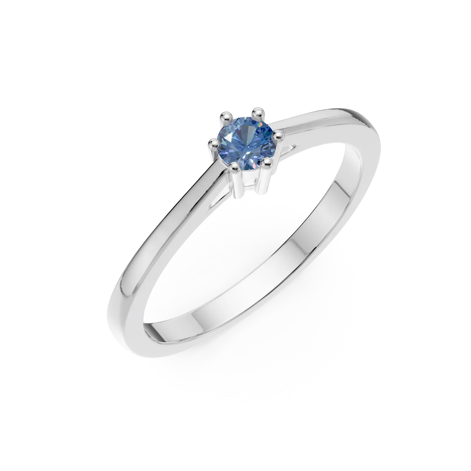 Inel de logodna din aur alb cu diamant albastru de 0.21ct