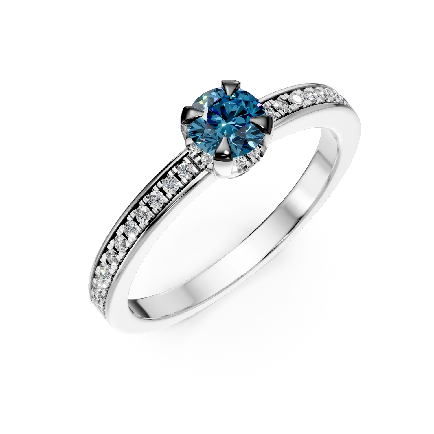 Inel de logodna din aur alb cu diamant albastru de 0.32ct si diamante transparente de 0.19ct