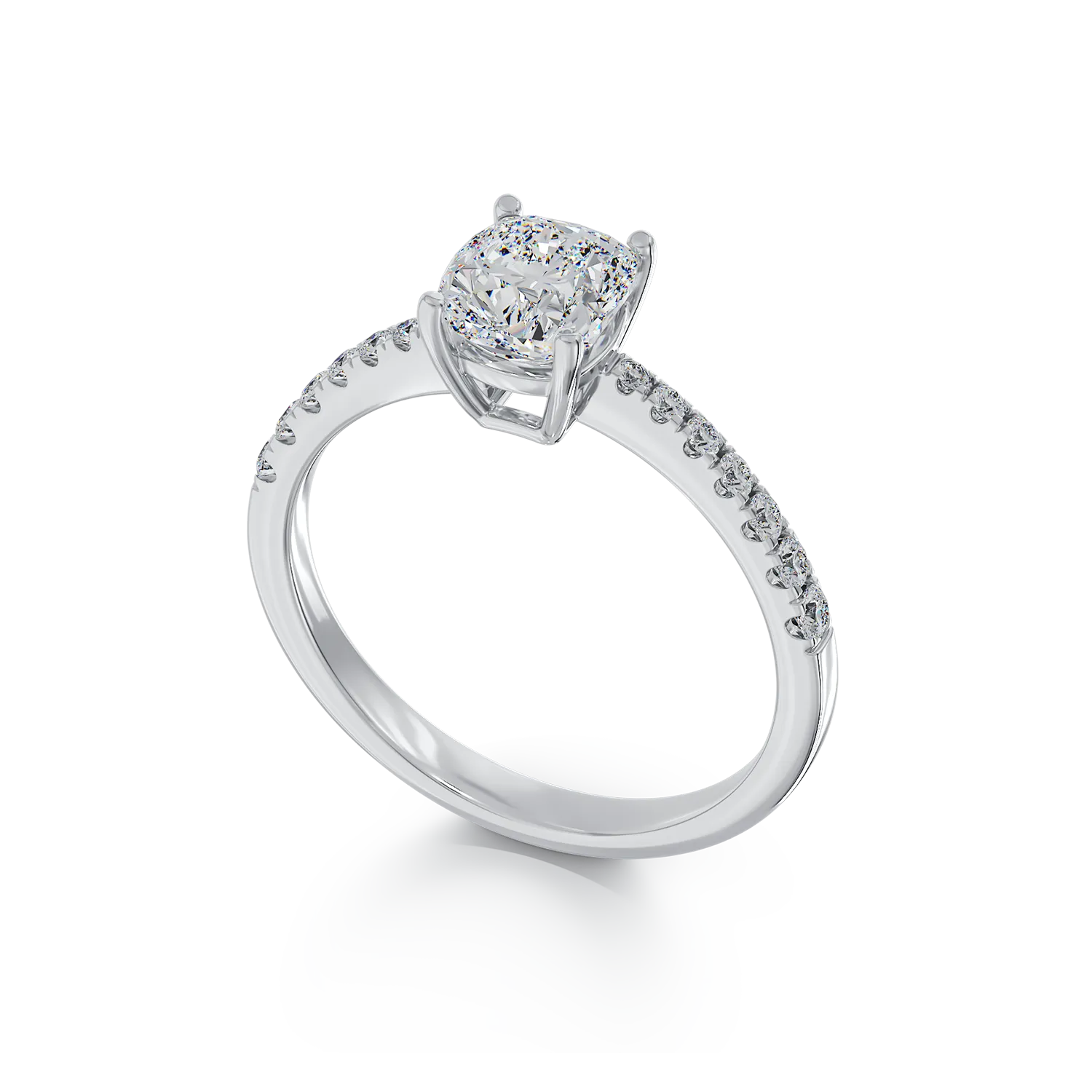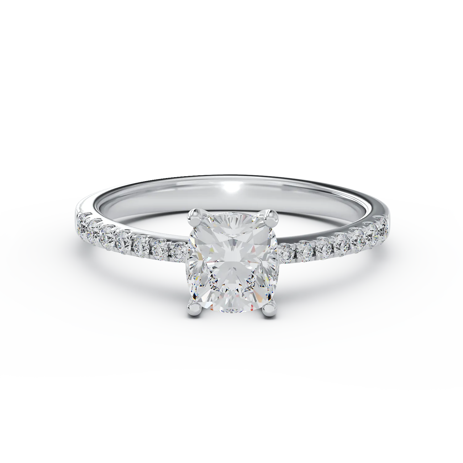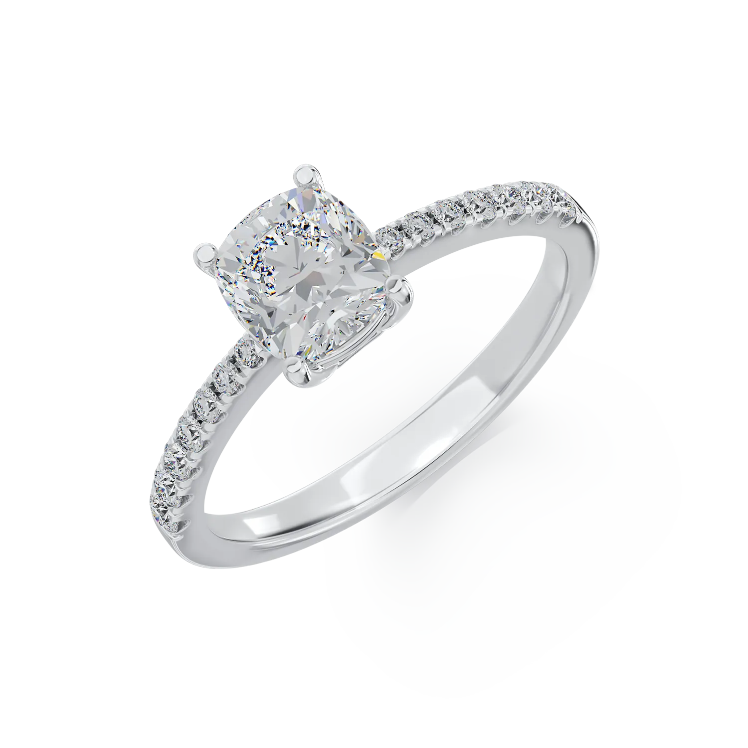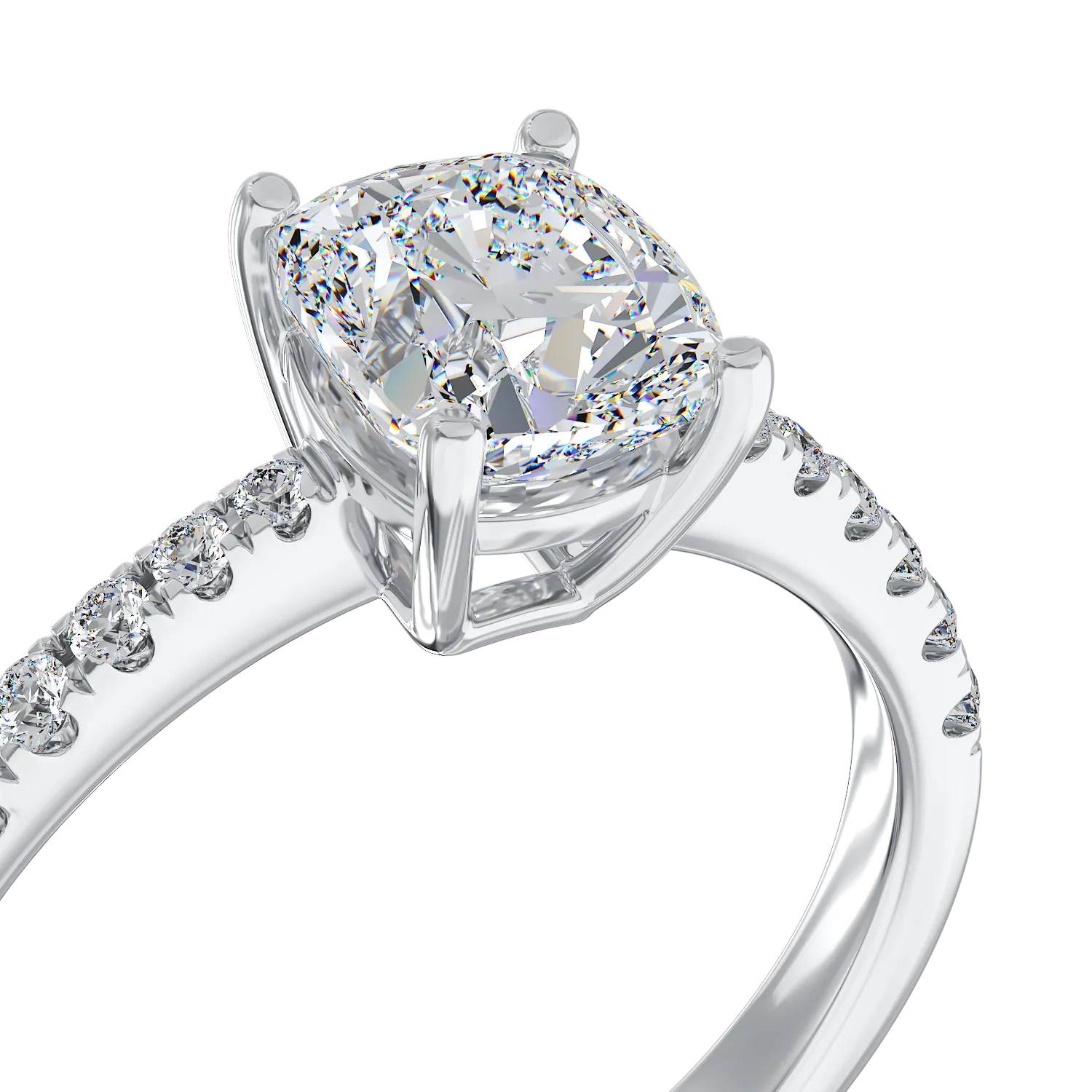 Inel de logodna din aur alb cu diamant cushion de 1ct si diamante de 0.1ct