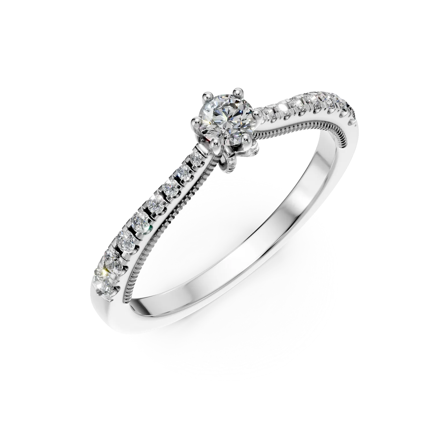 Inel de logodna din aur alb cu diamant de 0.16ct si diamante de 0.18ct