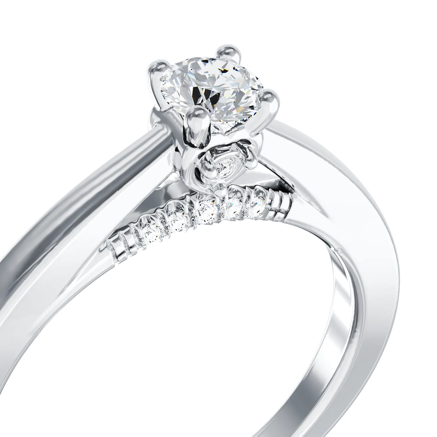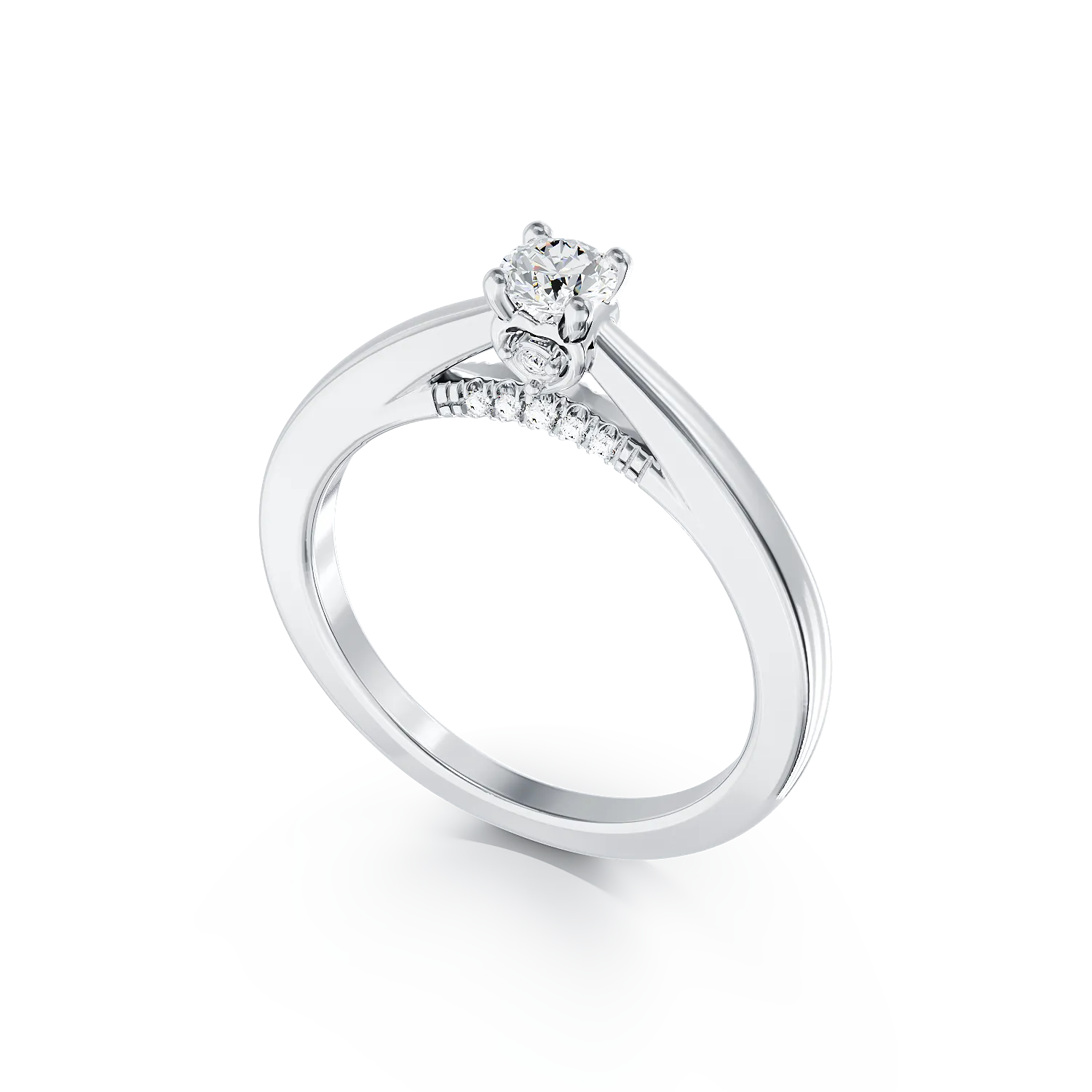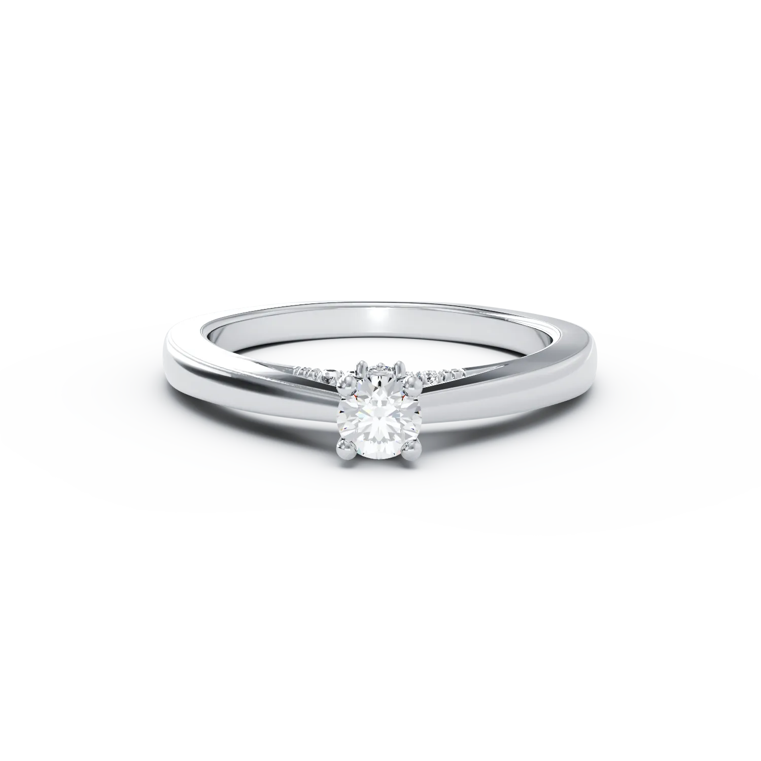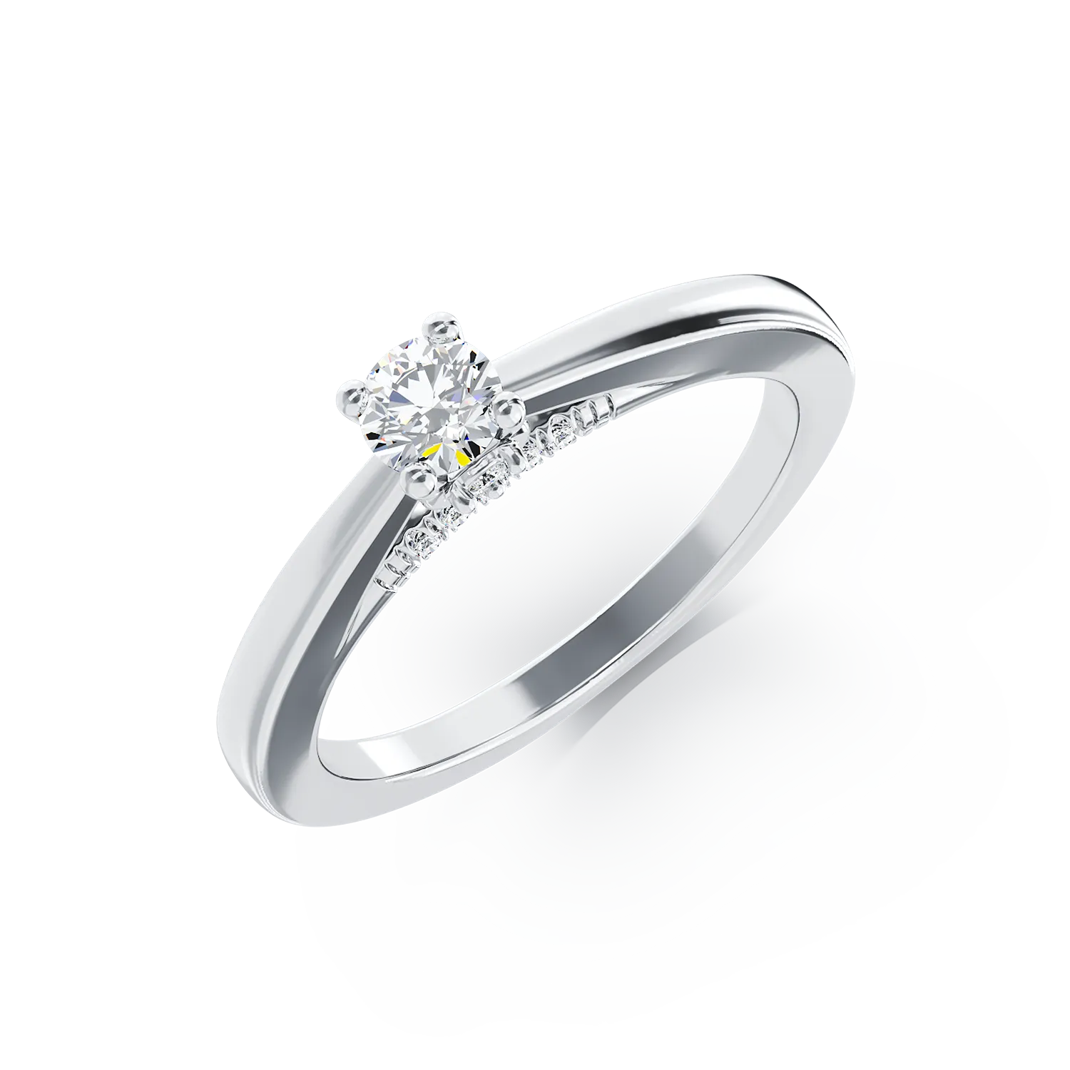 Inel de logodna din aur alb cu diamant de 0.1ct si diamante de 0.04ct