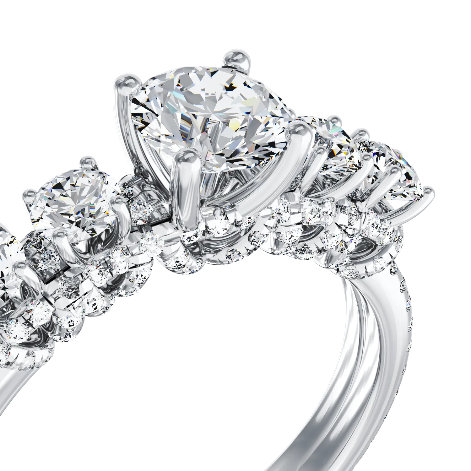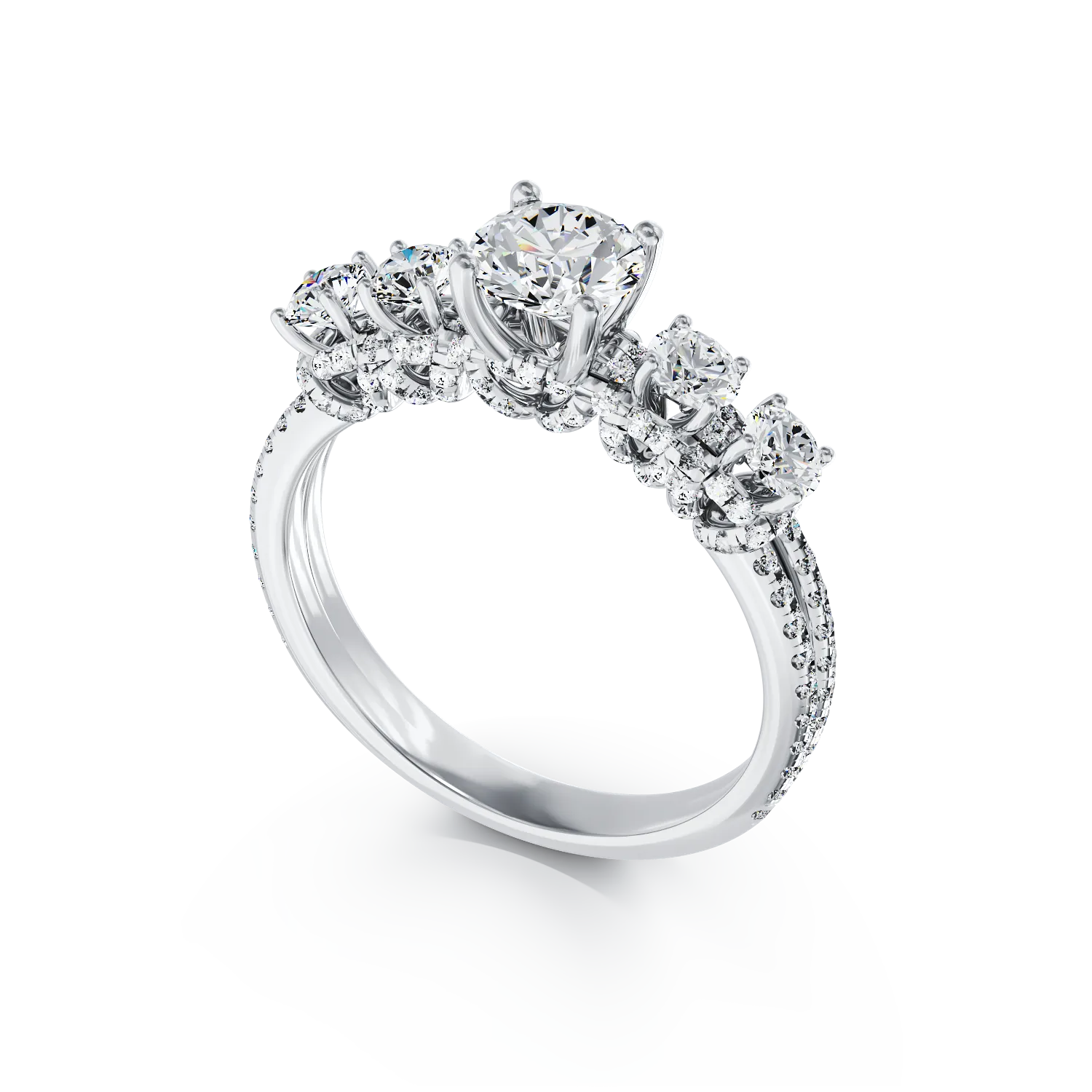 Inel de logodna din aur alb cu diamant de 0.63ct si diamante de 0.82ct