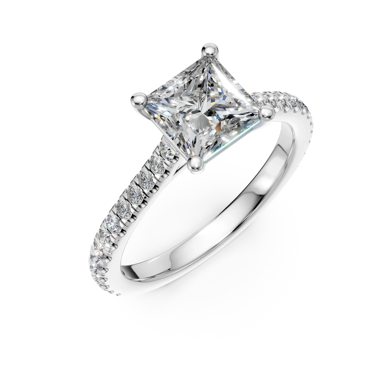 Inel de logodna din aur alb cu diamant princess de 1.5ct si diamante de 0.33ct