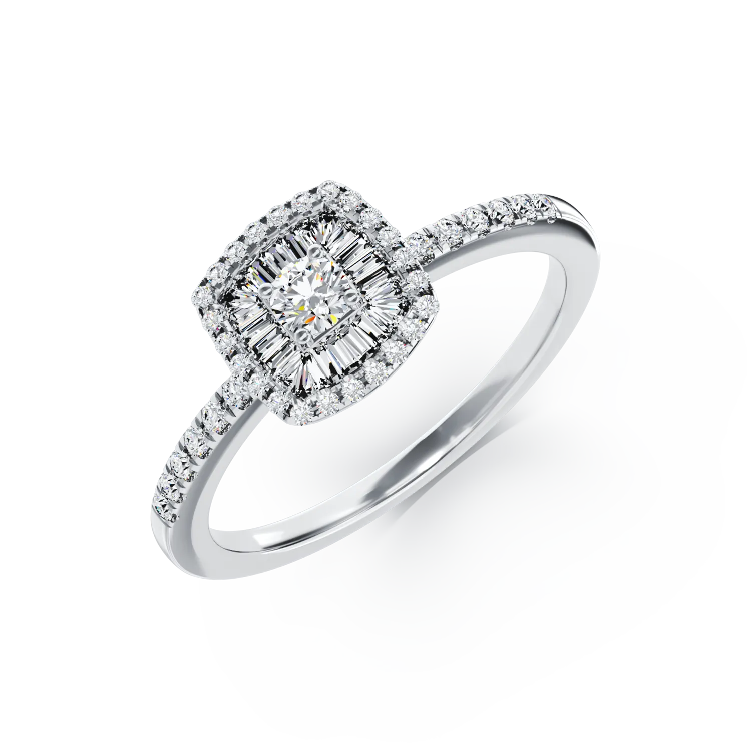 Inel de logodna din aur alb cu diamante baguette si rotunde de 0.3ct