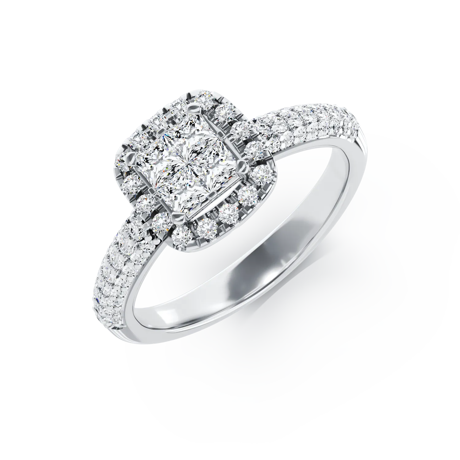 Inel de logodna din aur alb cu diamante princess si rotunde de 0.5ct