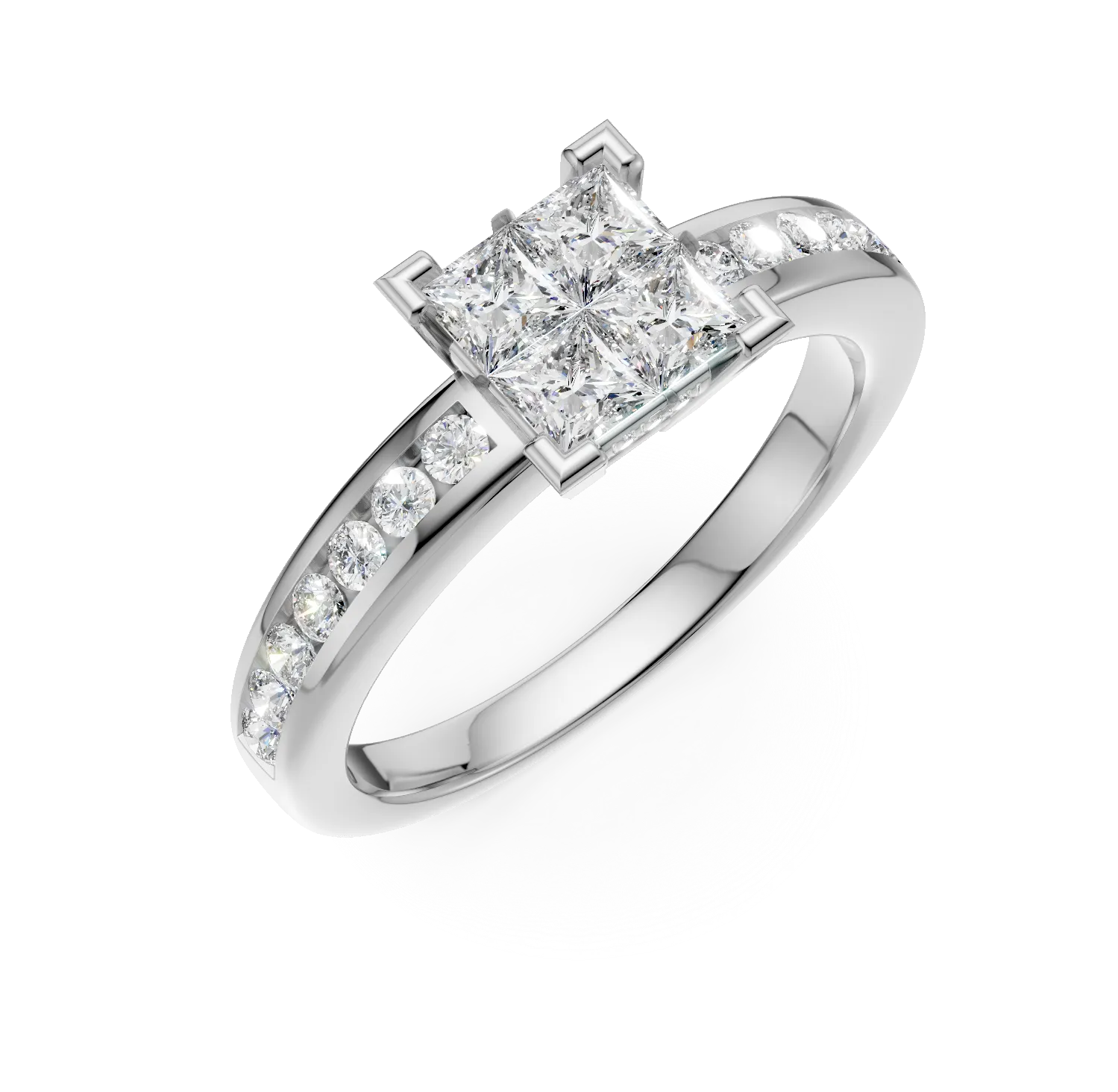 Inel de logodna din aur alb cu diamante princess si rotunde de 0.7ct