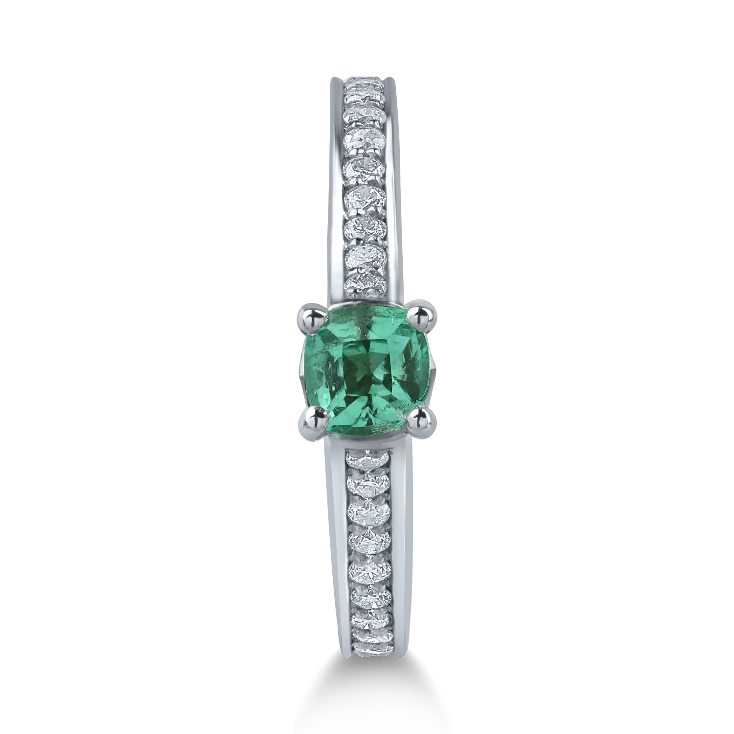 Inel de logodna din aur alb cu smarald de 0.35ct si diamante de 0.22ct