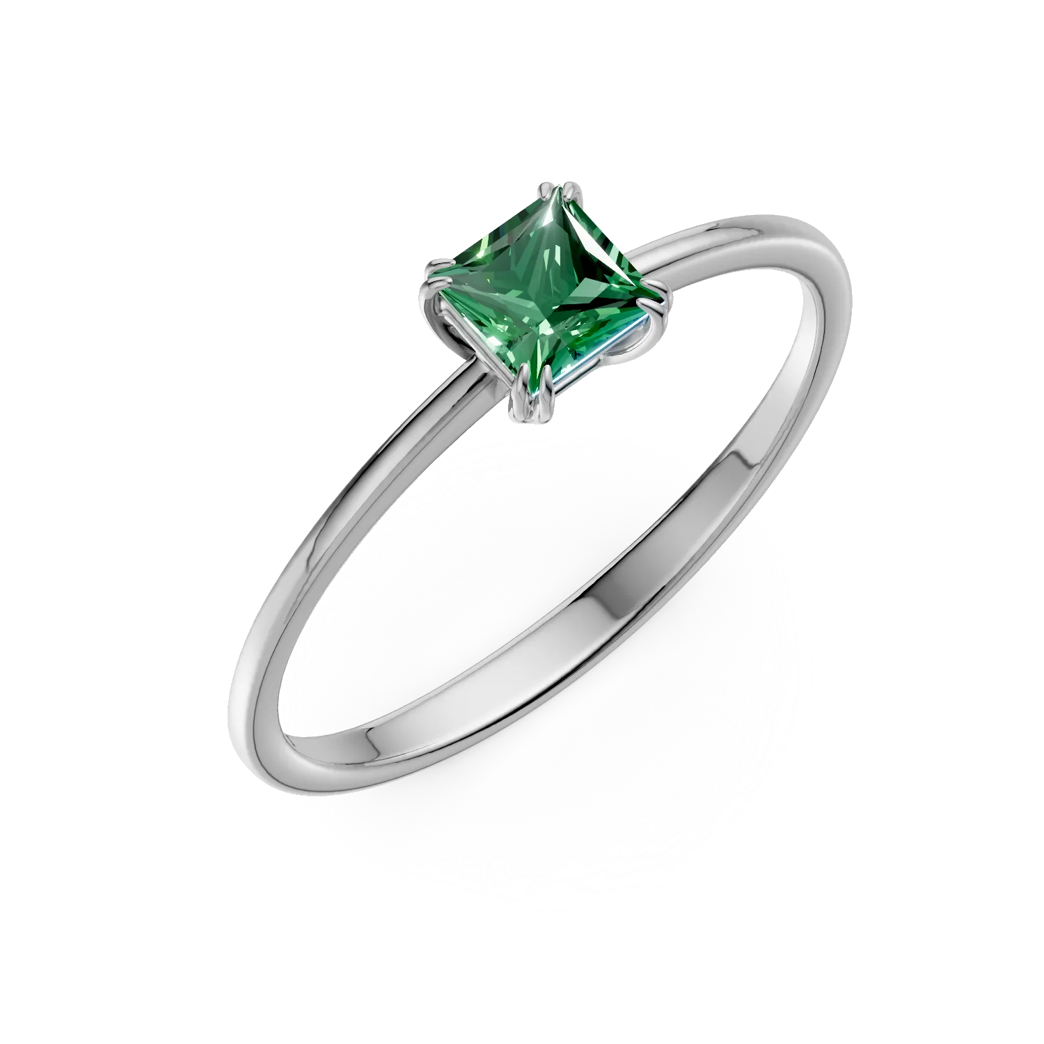 Inel de logodna din aur alb cu smarald de 0.39ct