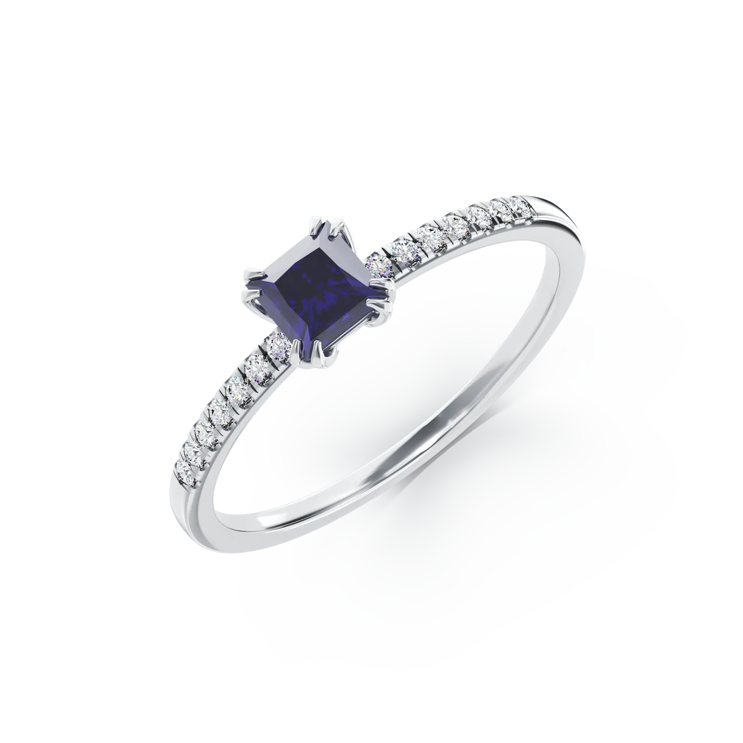 Inel de logodna din aur alb cu tanzanit princess de 0.38ct si diamante de 0.05ct