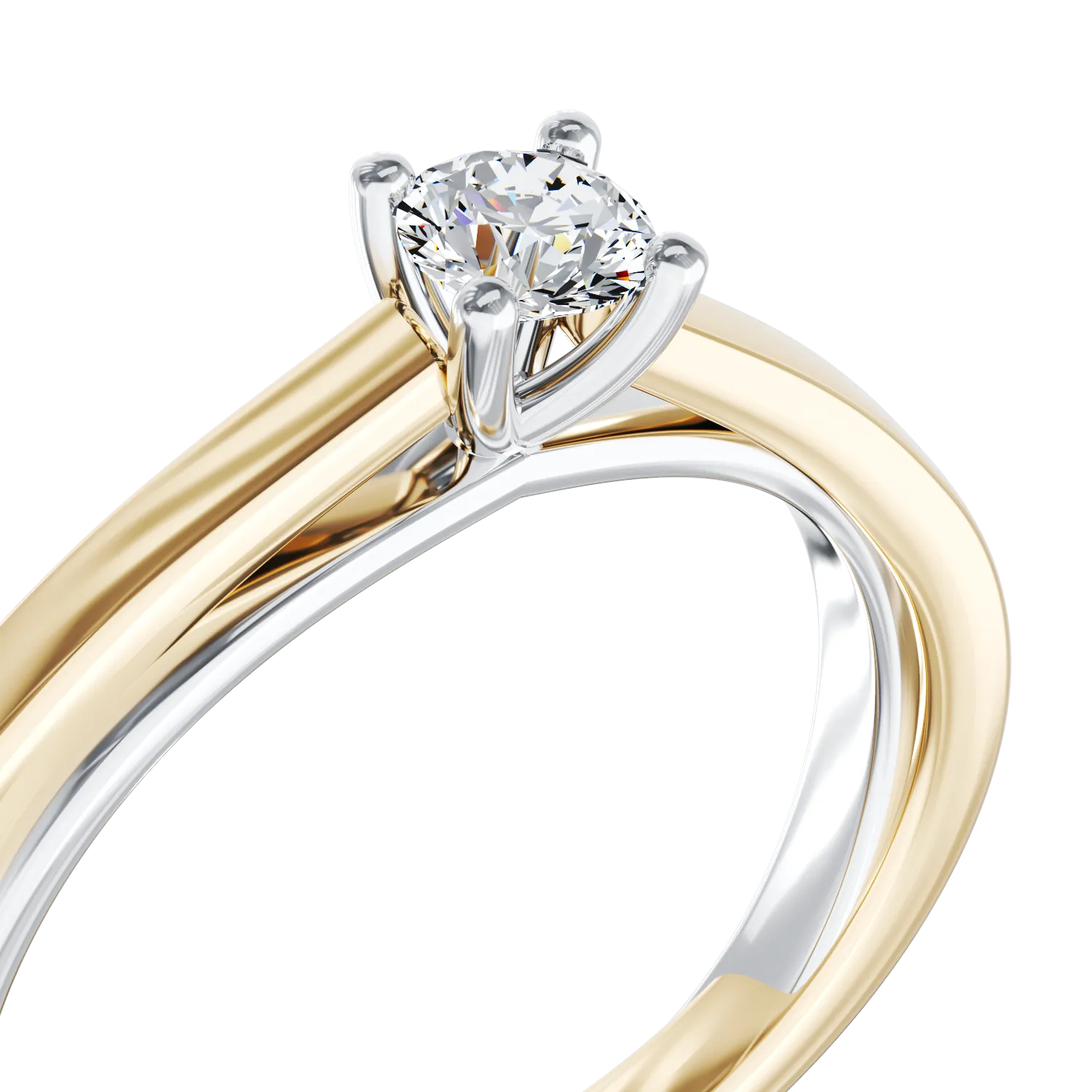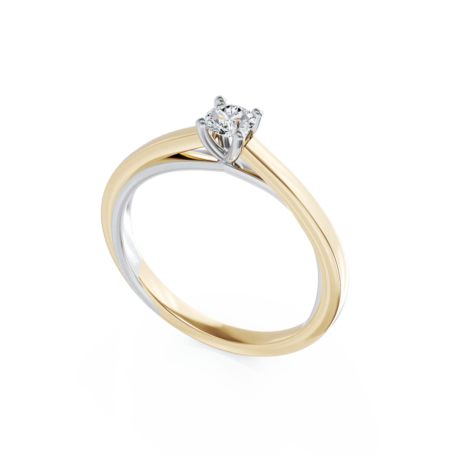 Inel de logodna din aur alb-galben cu diamant solitaire de 0.19ct