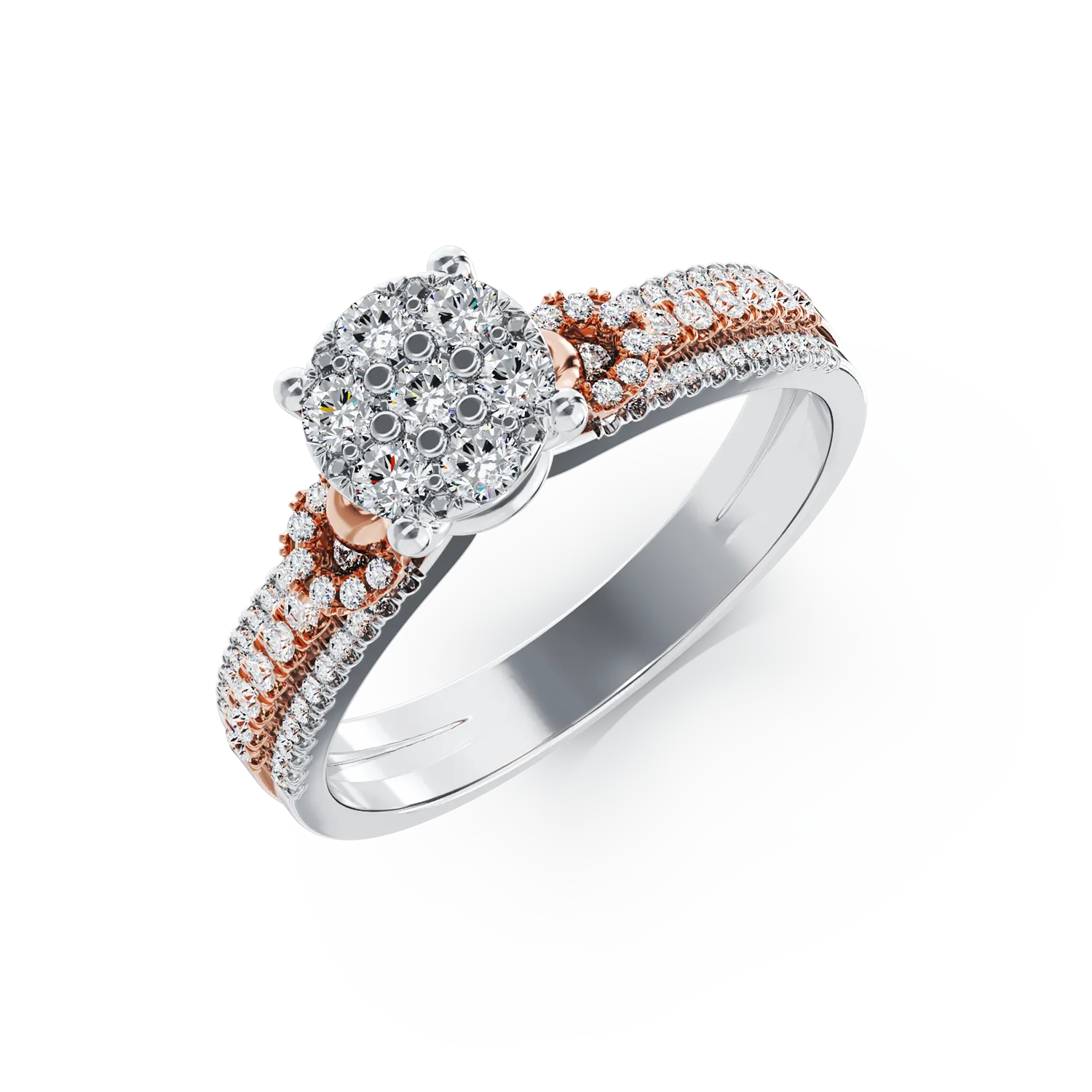 Inel de logodna din aur alb-roz cu diamante de 0.46ct
