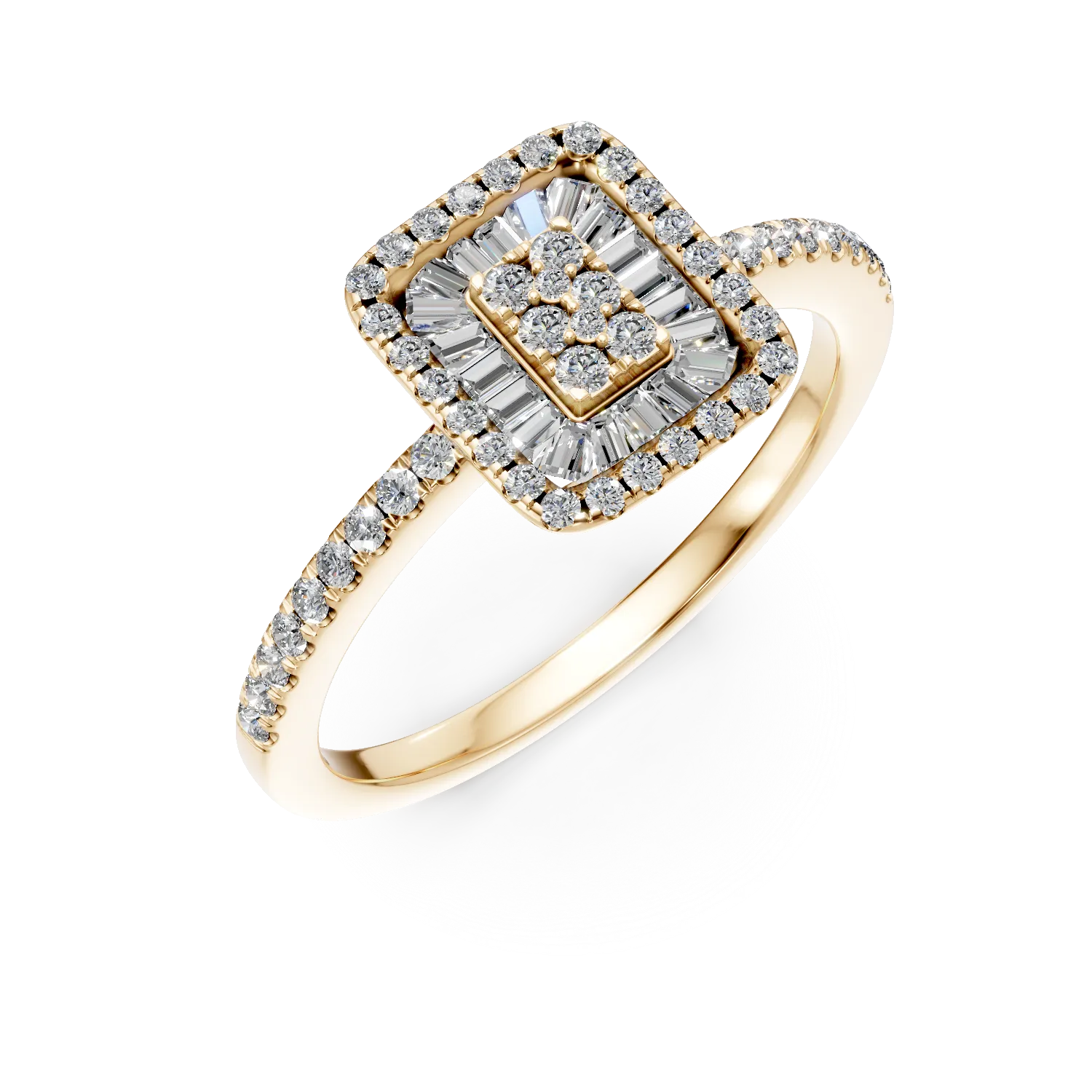 Inel de logodna din aur galben cu diamante baguette si rotunde de 0.2ct