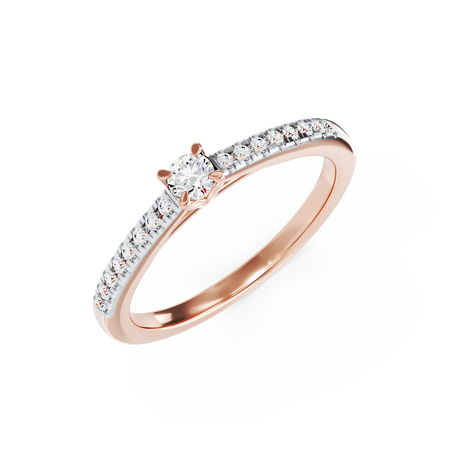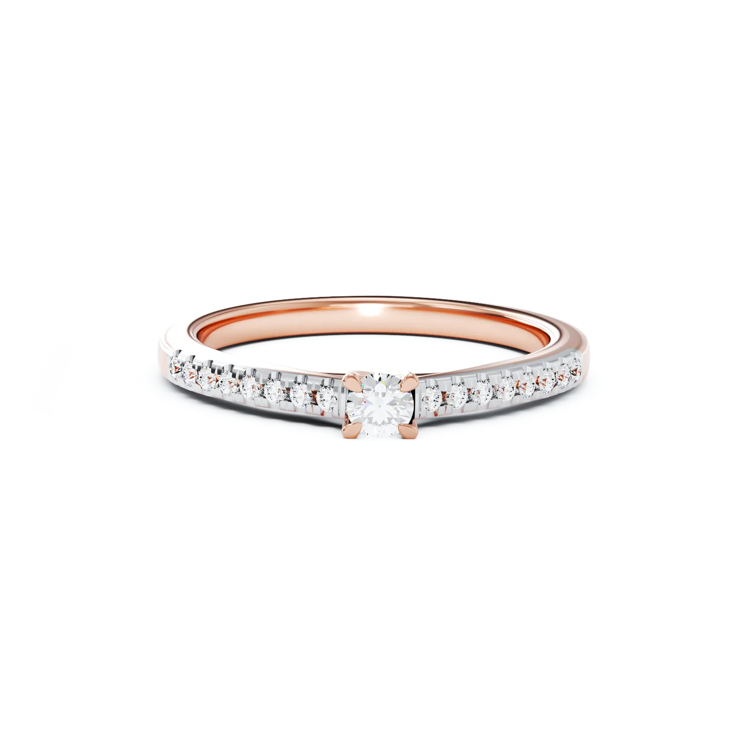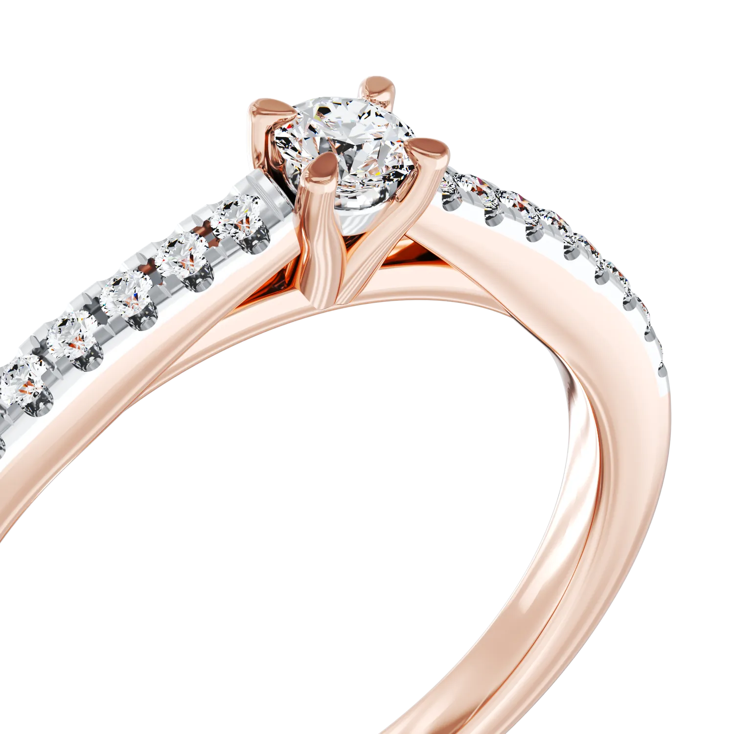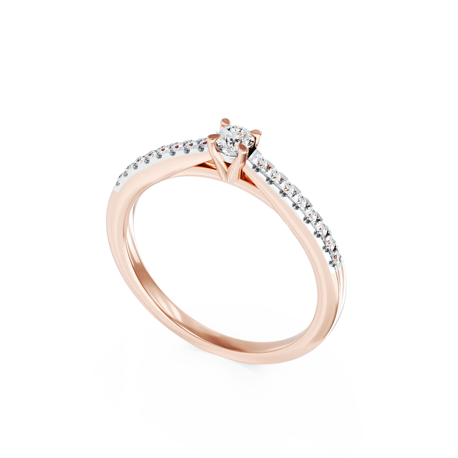 Inel de logodna din aur roz cu diamant de 0.15ct si diamante de 0.16ct