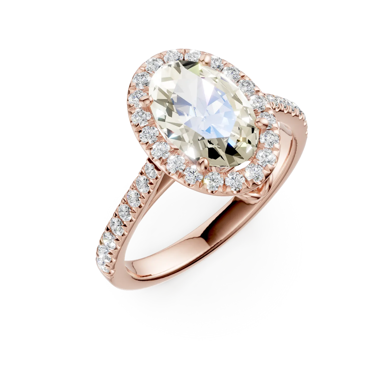 Inel de logodna din aur roz cu diamante ovale si rotunde de 1.3ct