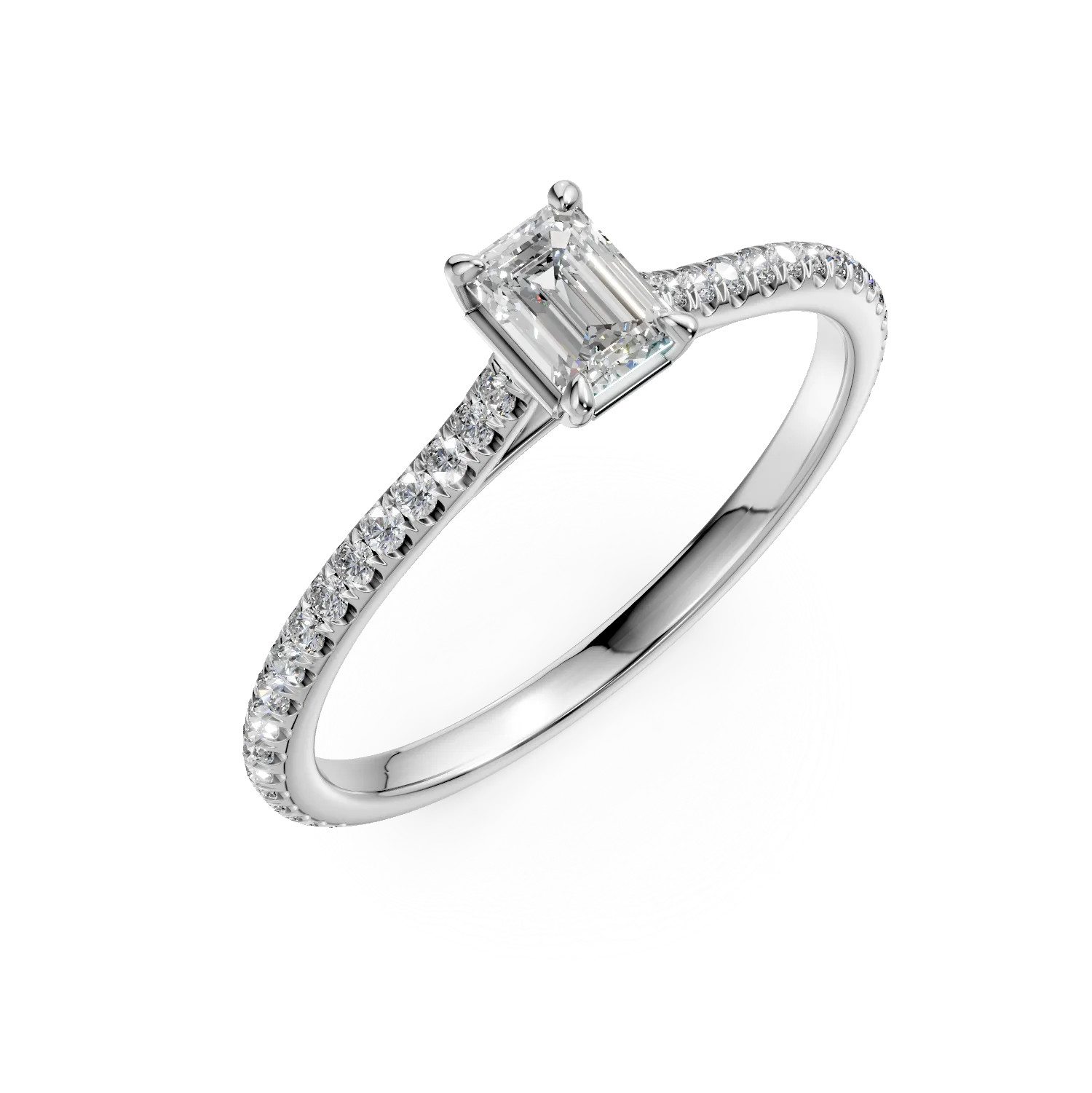 Inel de logodna din platina cu diamant emerald de 0.3ct si diamante de 0.2ct