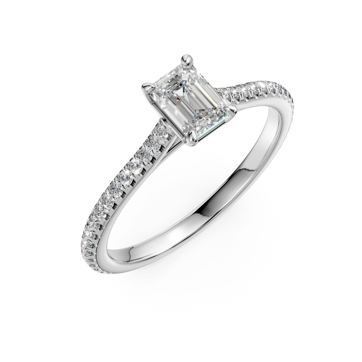 Inel de logodna din platina cu diamant emerald de 0.5ct si diamante de 0.2ct