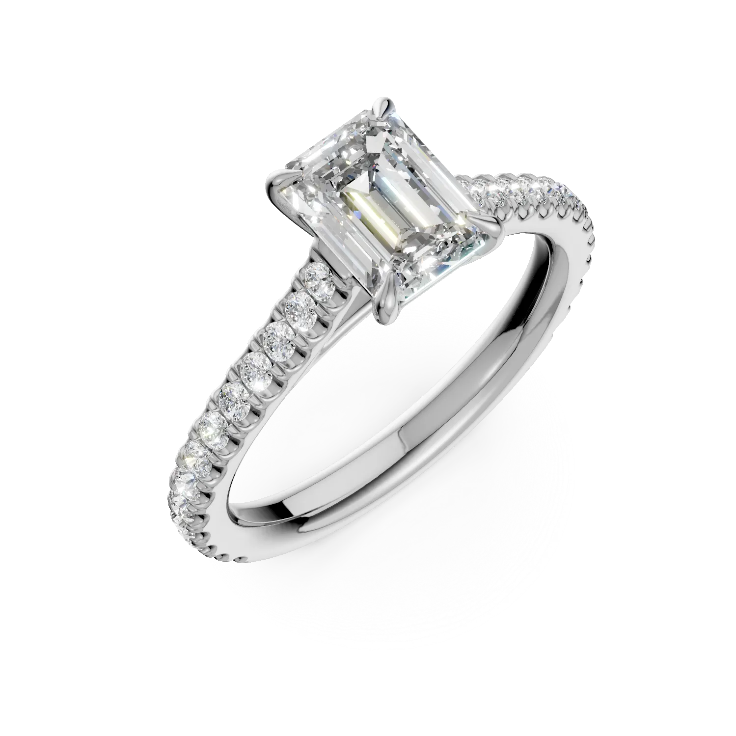 Inel de logodna din platina cu diamant emerald de 1.5ct si diamante de 0.33ct