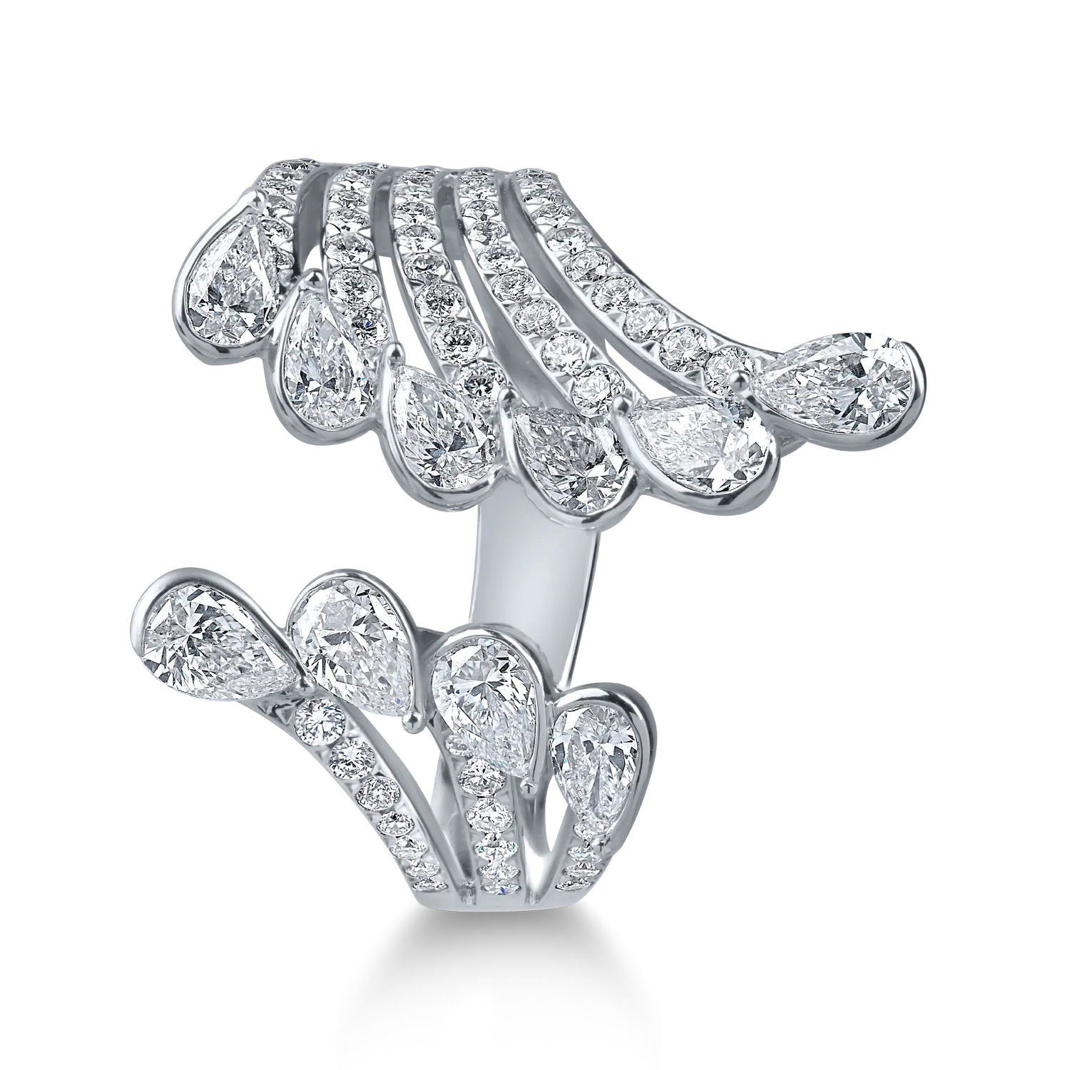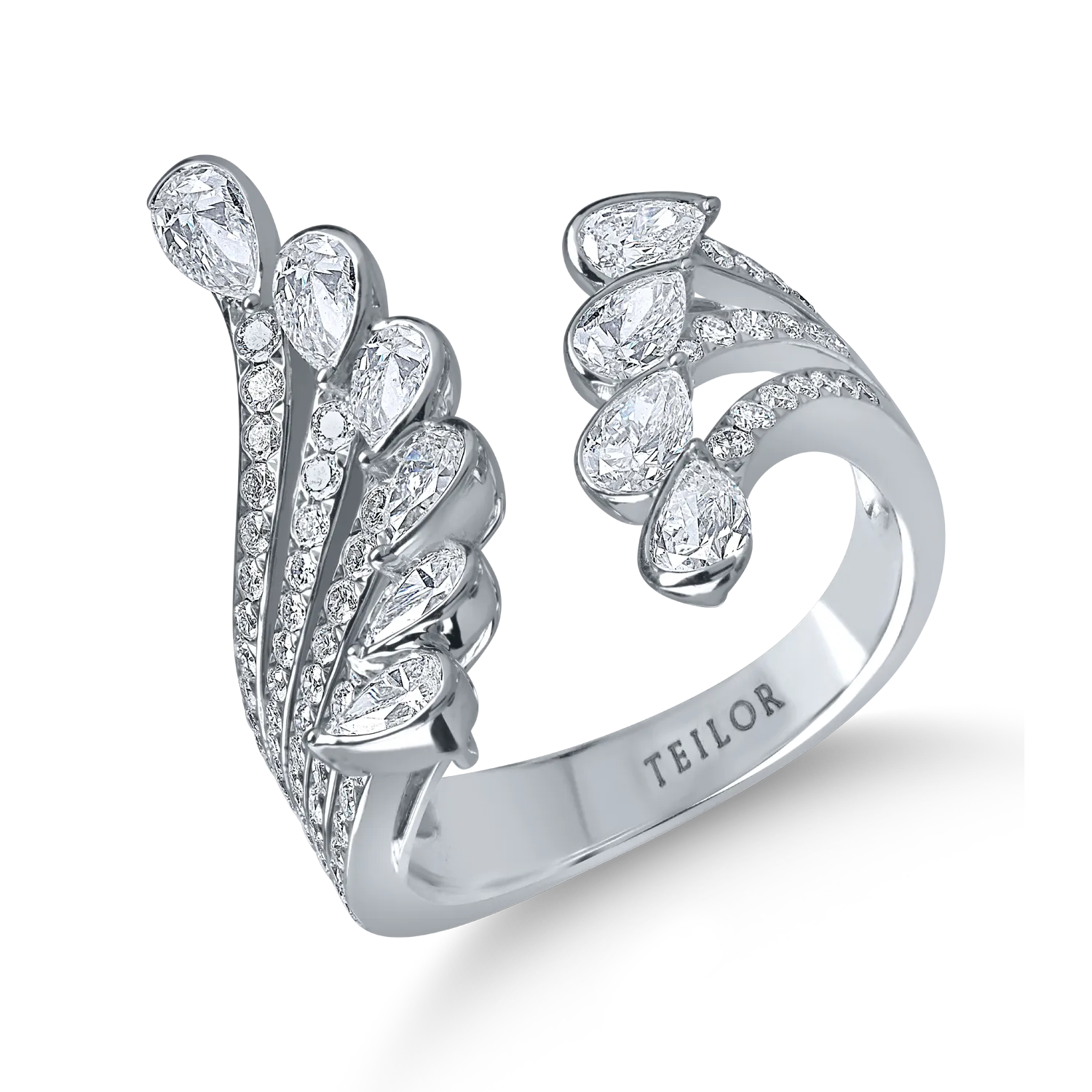 Inel deschis din aur alb cu diamante pear si rotunde de 1.7ct