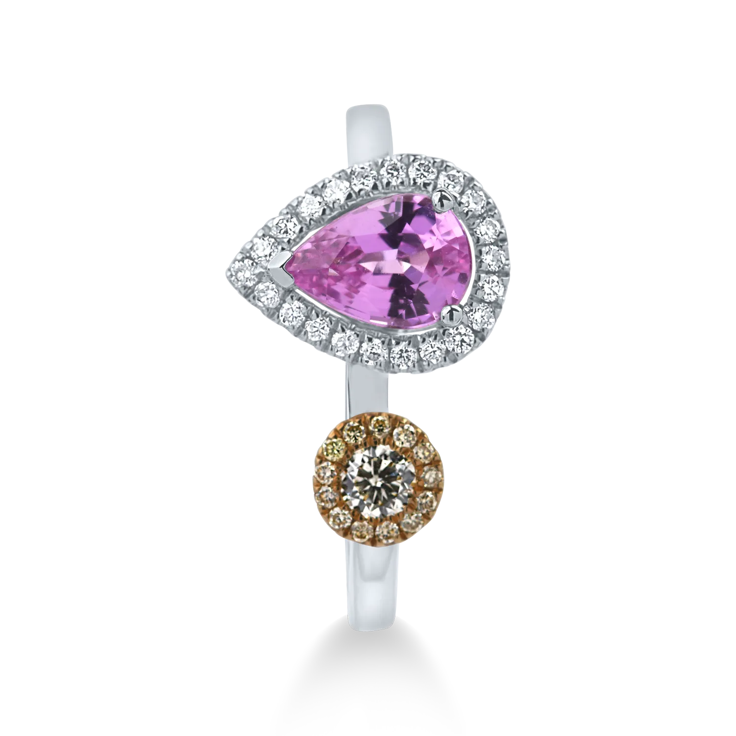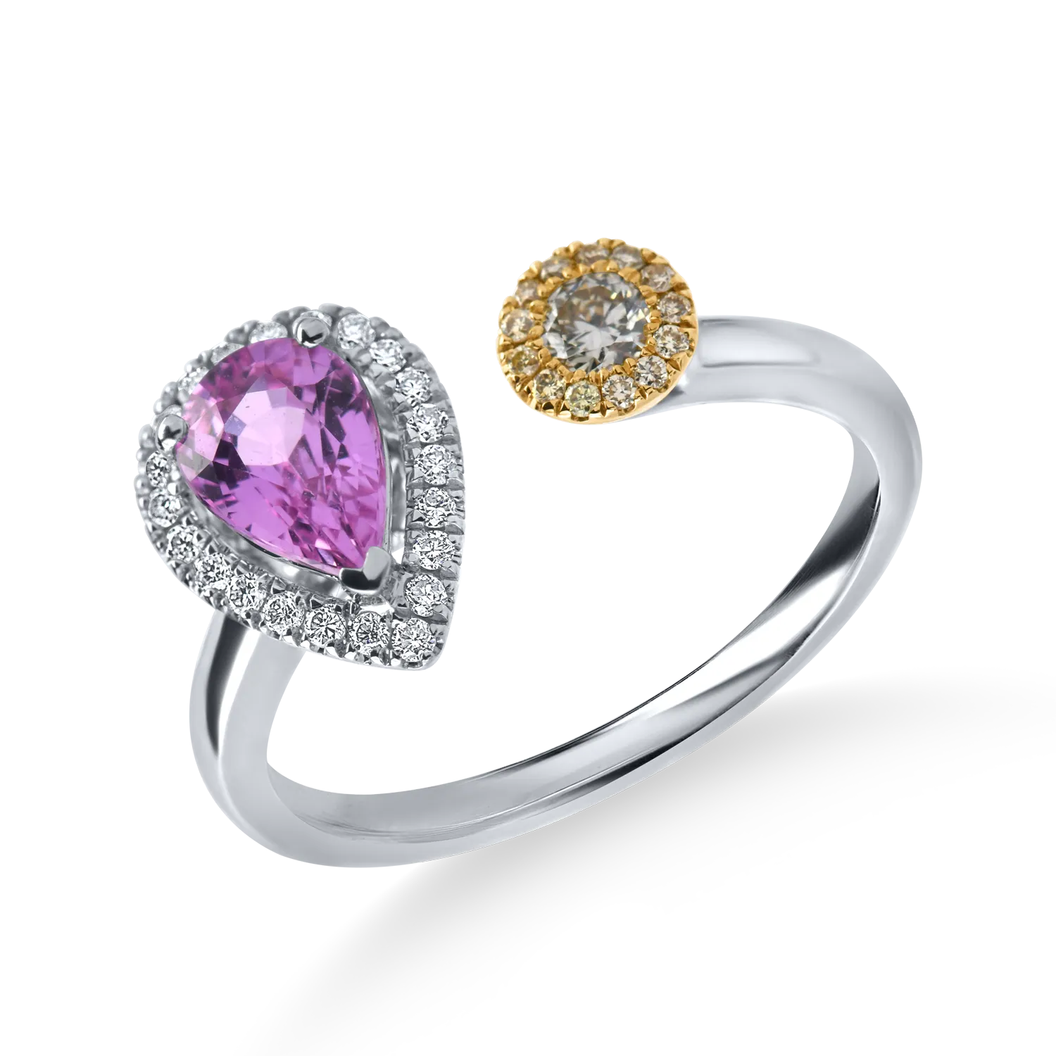 Inel deschis din aur alb cu diamante si safir roz pear de 1.1ct