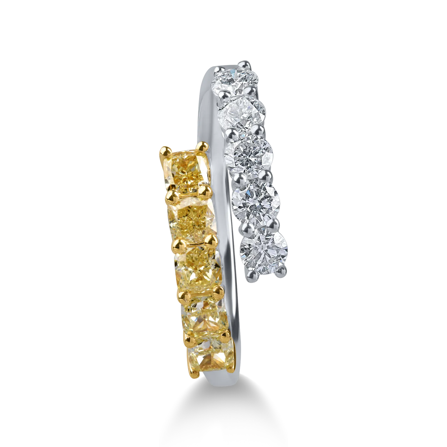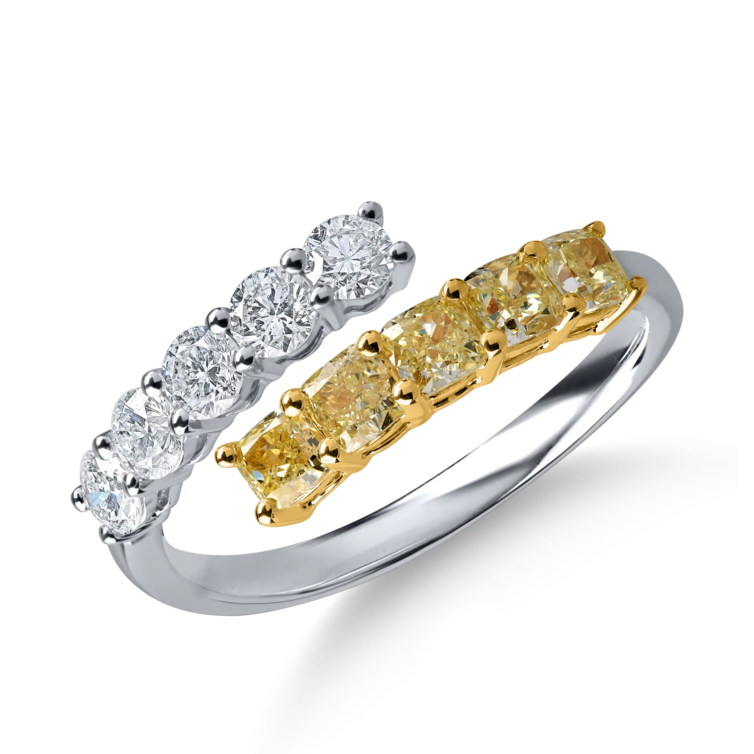 Inel deschis din aur alb-galben cu diamante galbene cushion si diamante incolore de 1.39ct