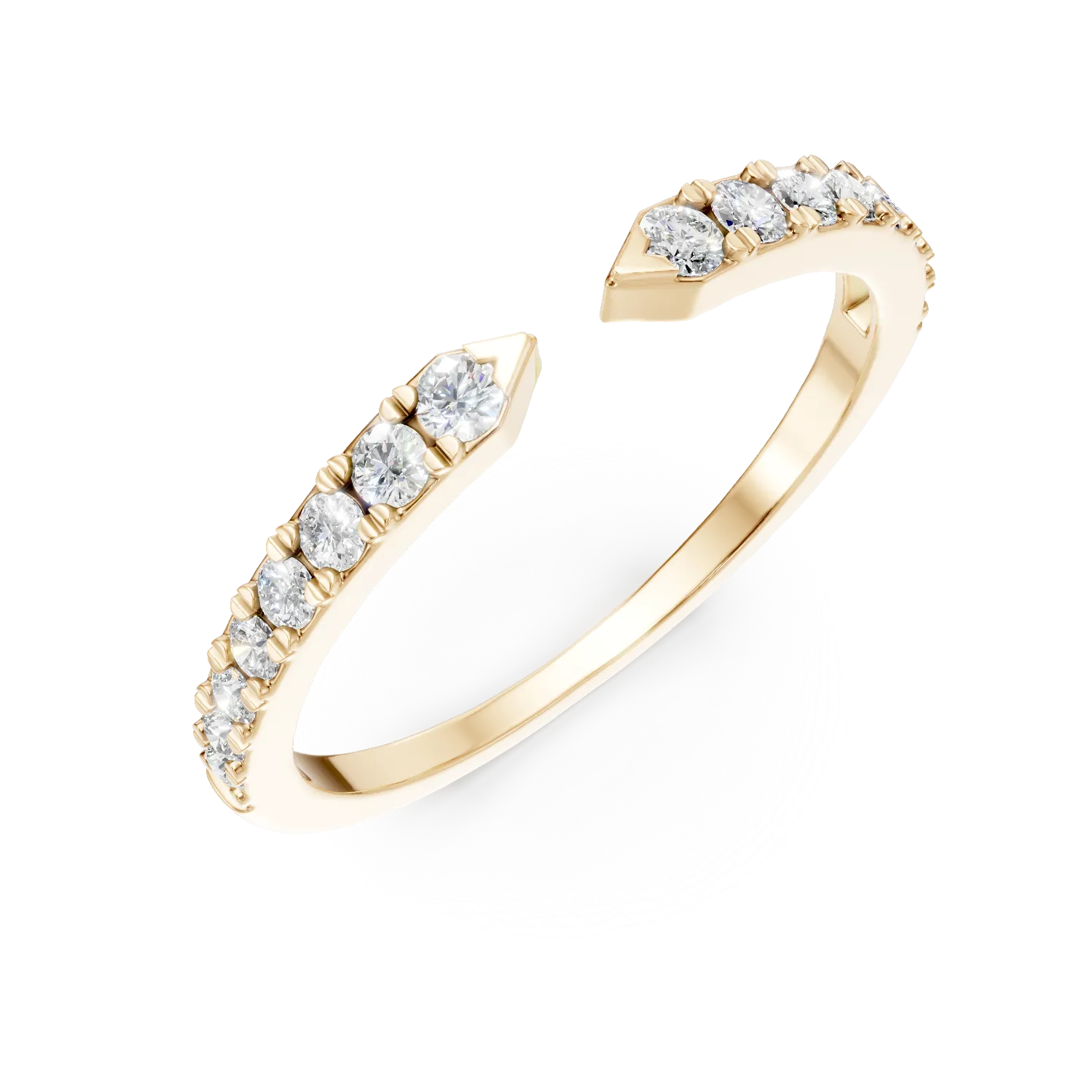Arta si originalitate. Acest inel deschis din aur galben cu diamante de 0.2ct este o expresie a creativitatii, cu un design unic si atragator. Fiecare bijuterie TEILOR invita la explorarea frumusetii in detalii si la exprimarea individualitatii tale.
