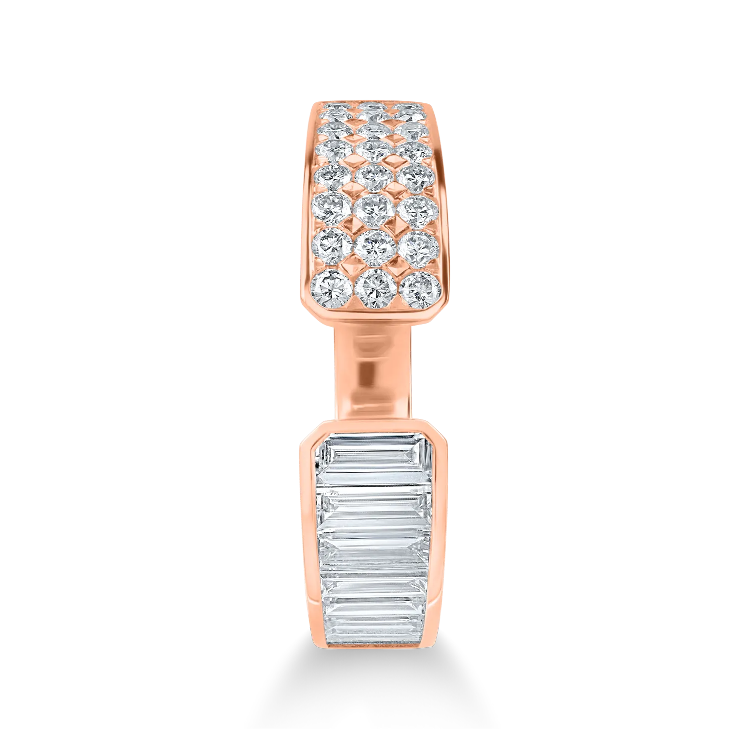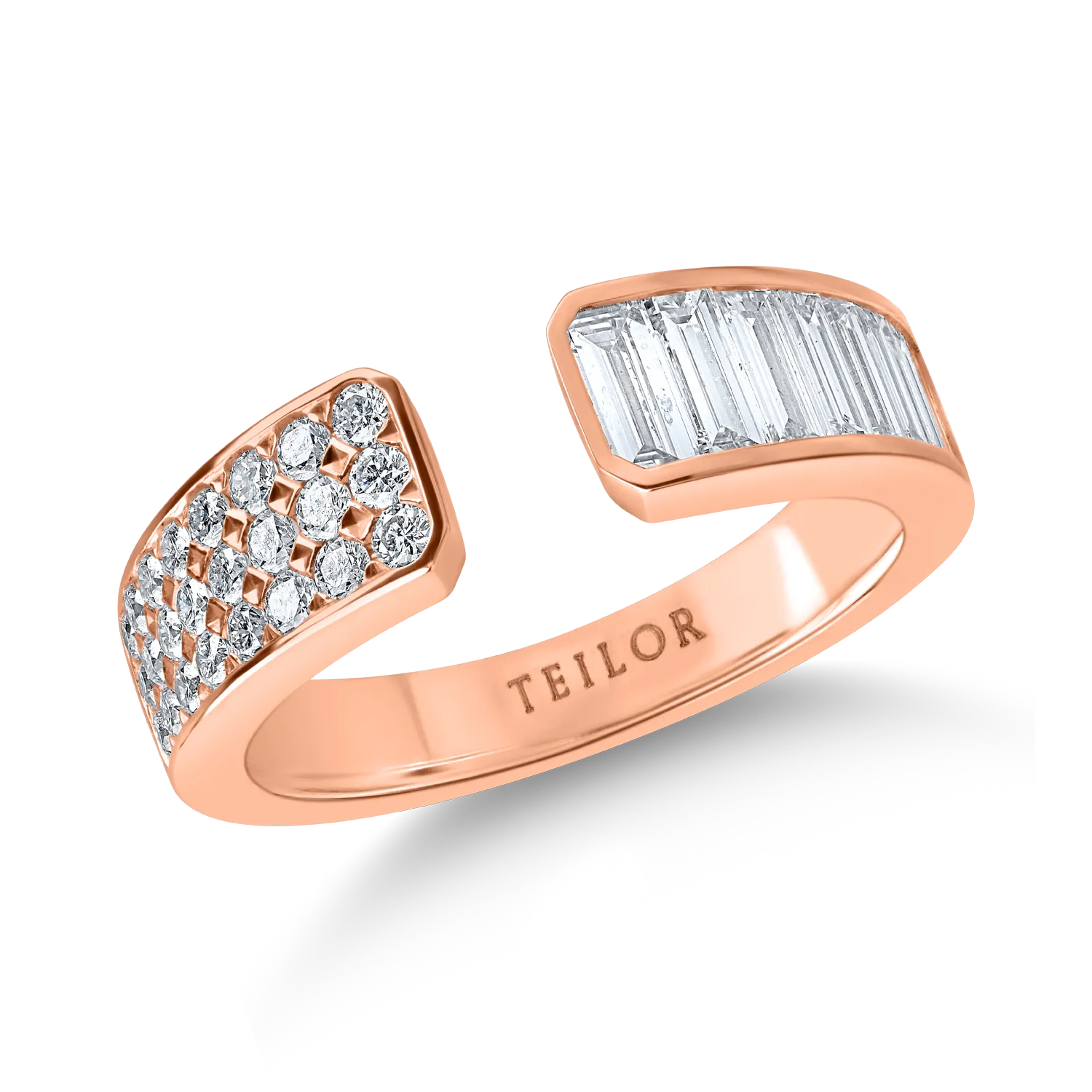 Inel deschis din aur roz cu diamante baguette si rotunde de 0.9ct