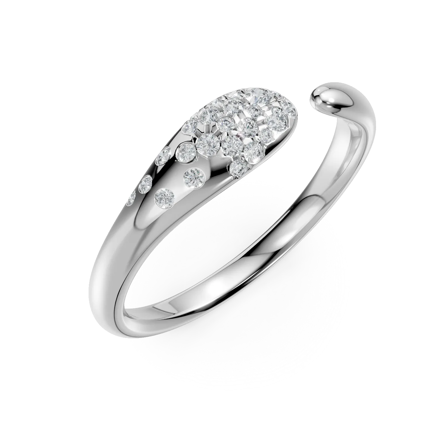 Inel deschis minimalist din aur alb cu diamante de 0.2ct