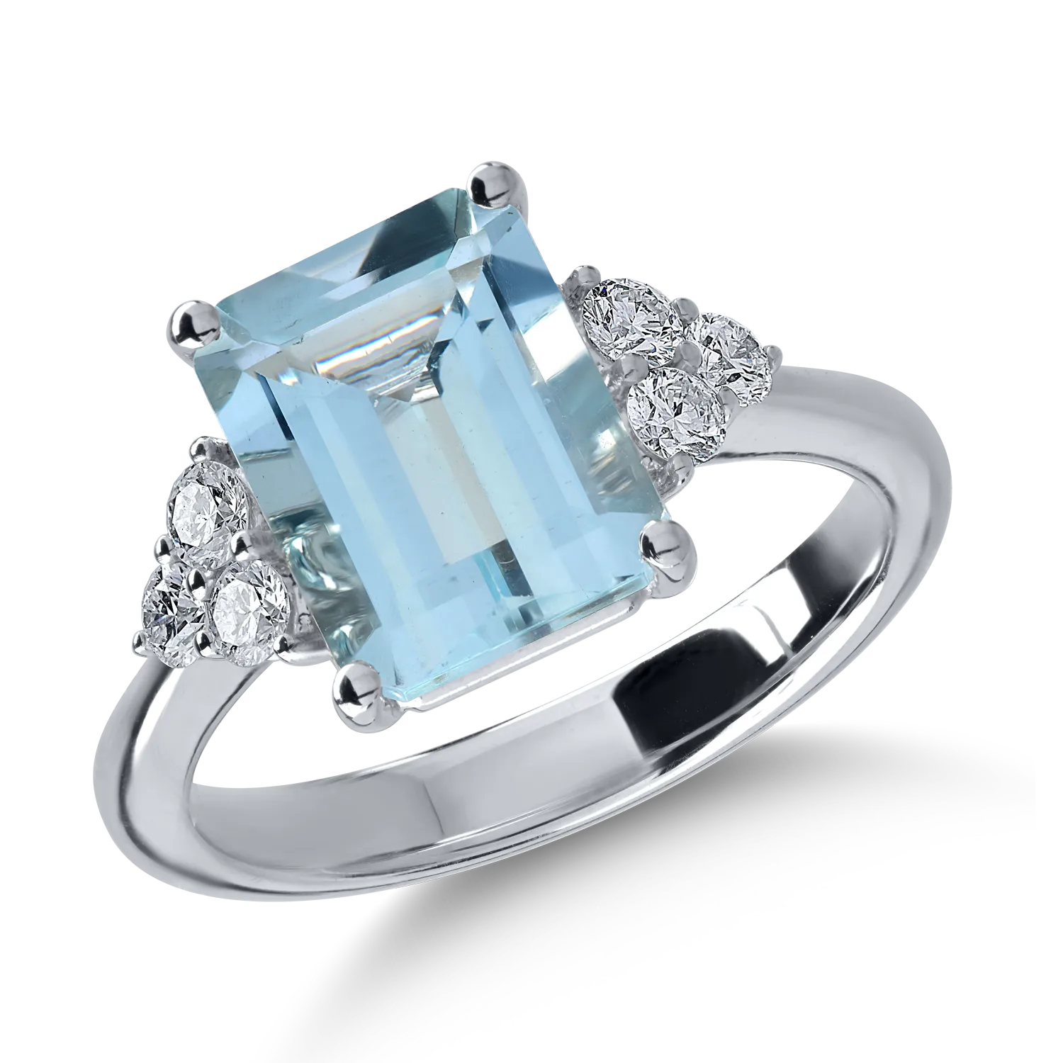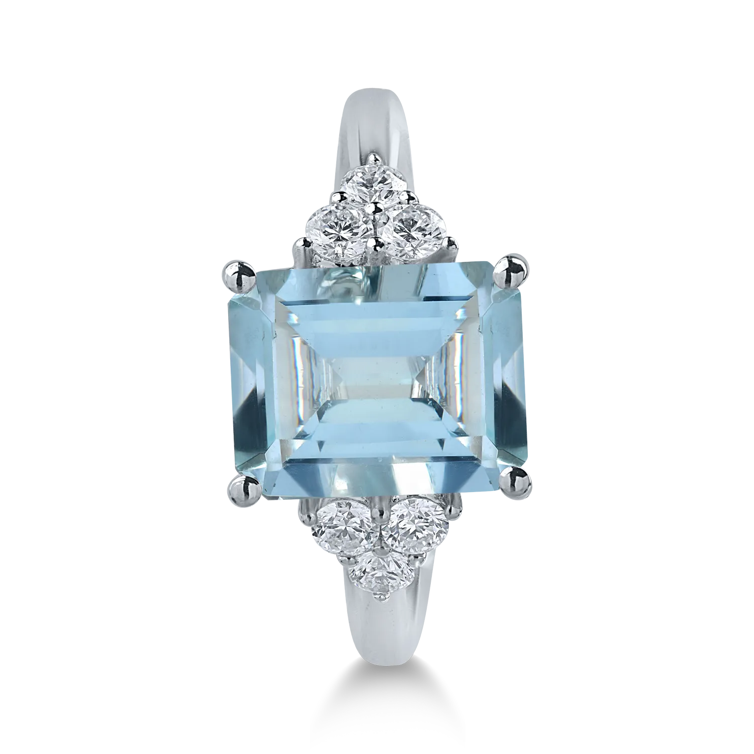 Inel din aur alb cu acvamarin octogonal de 3.2ct si diamante de 0.3ct