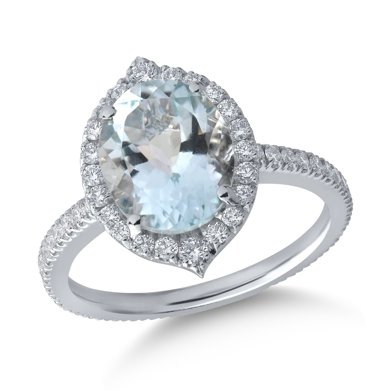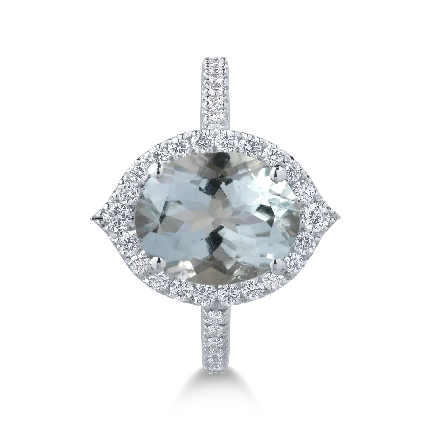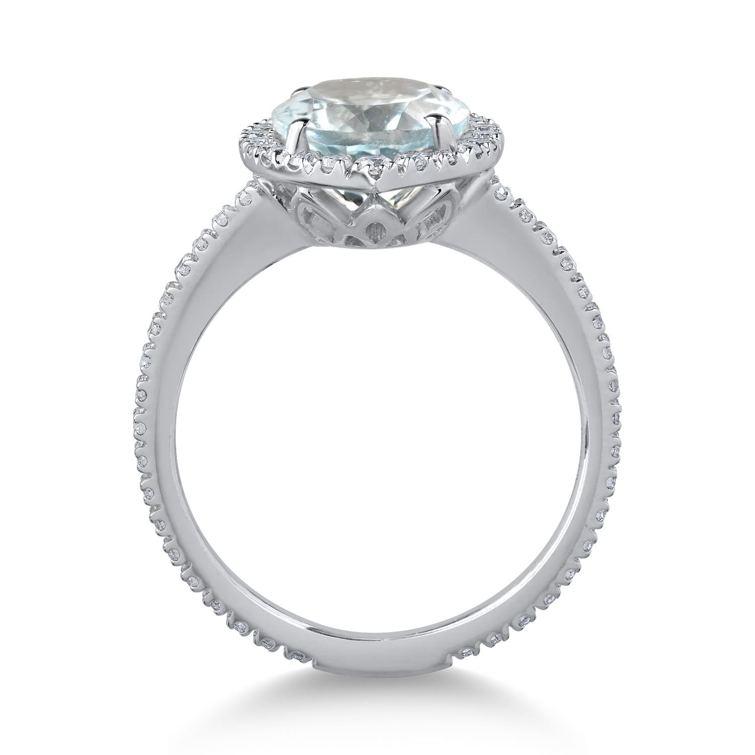 Inel din aur alb cu acvamarin oval de 2.5ct si diamante de 0.5ct