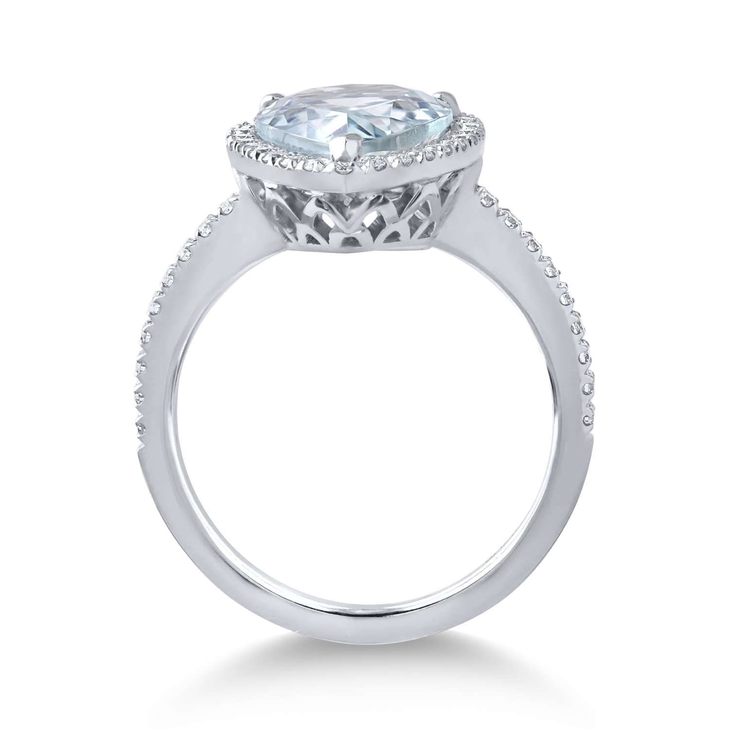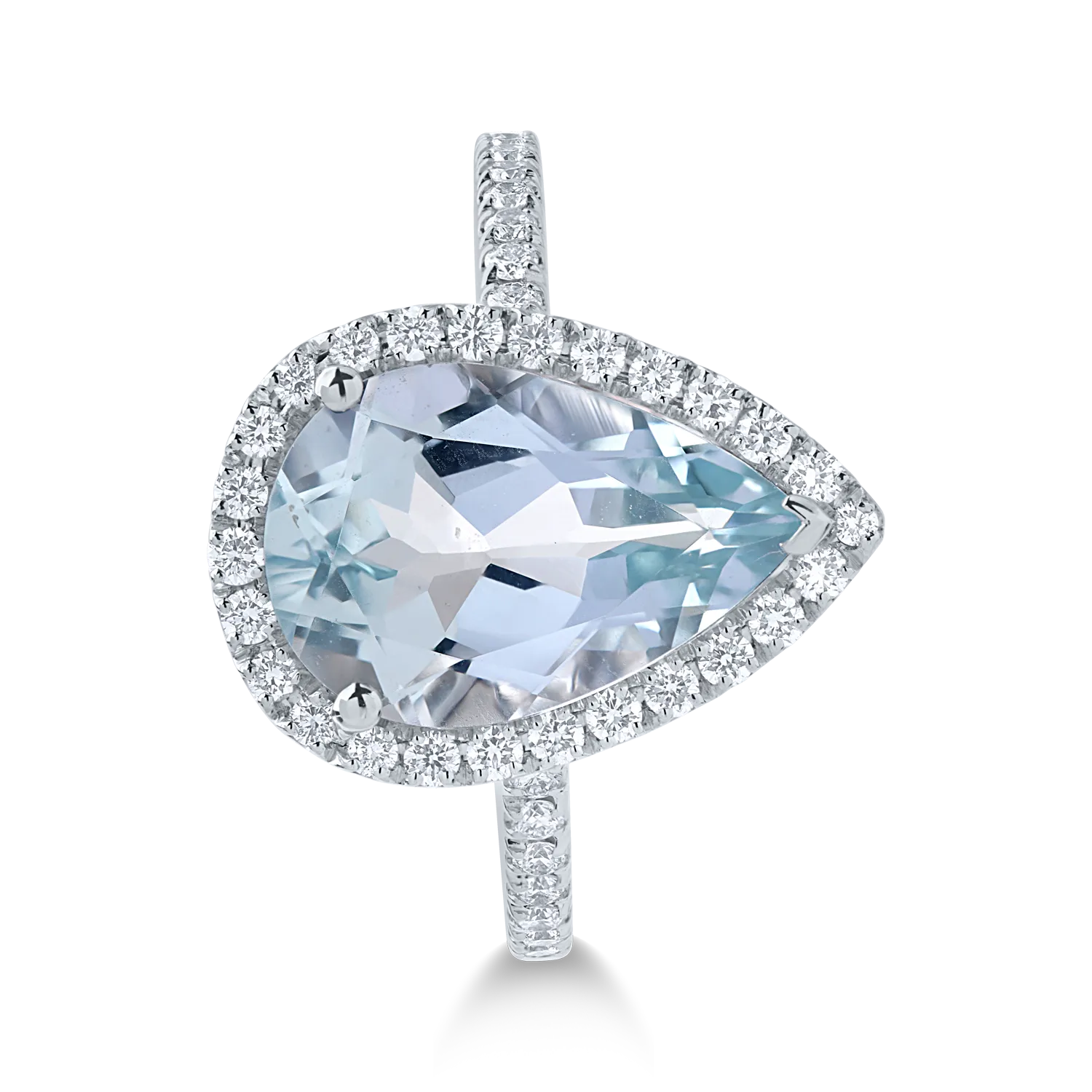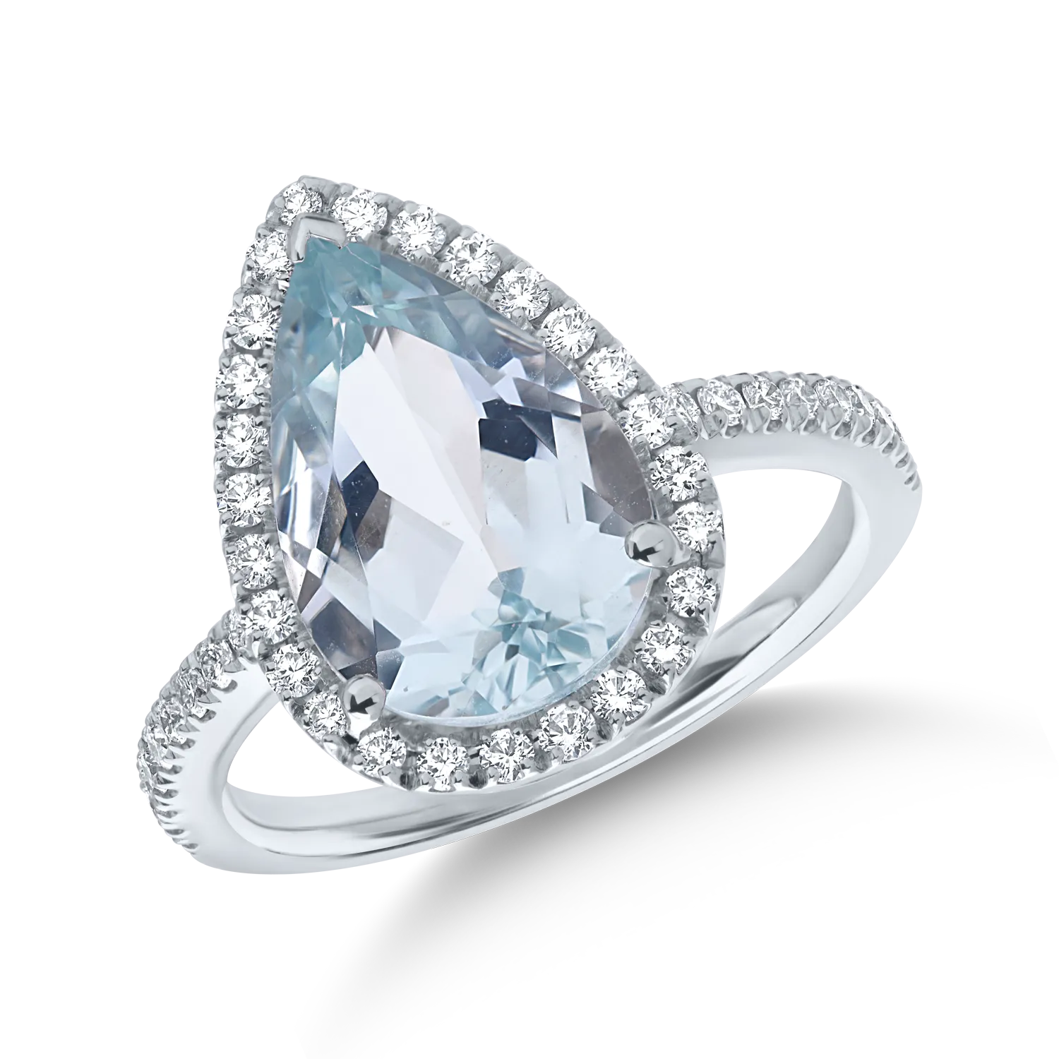 Inel din aur alb cu acvamarin pear de 3.4ct si diamante de 0.4ct
