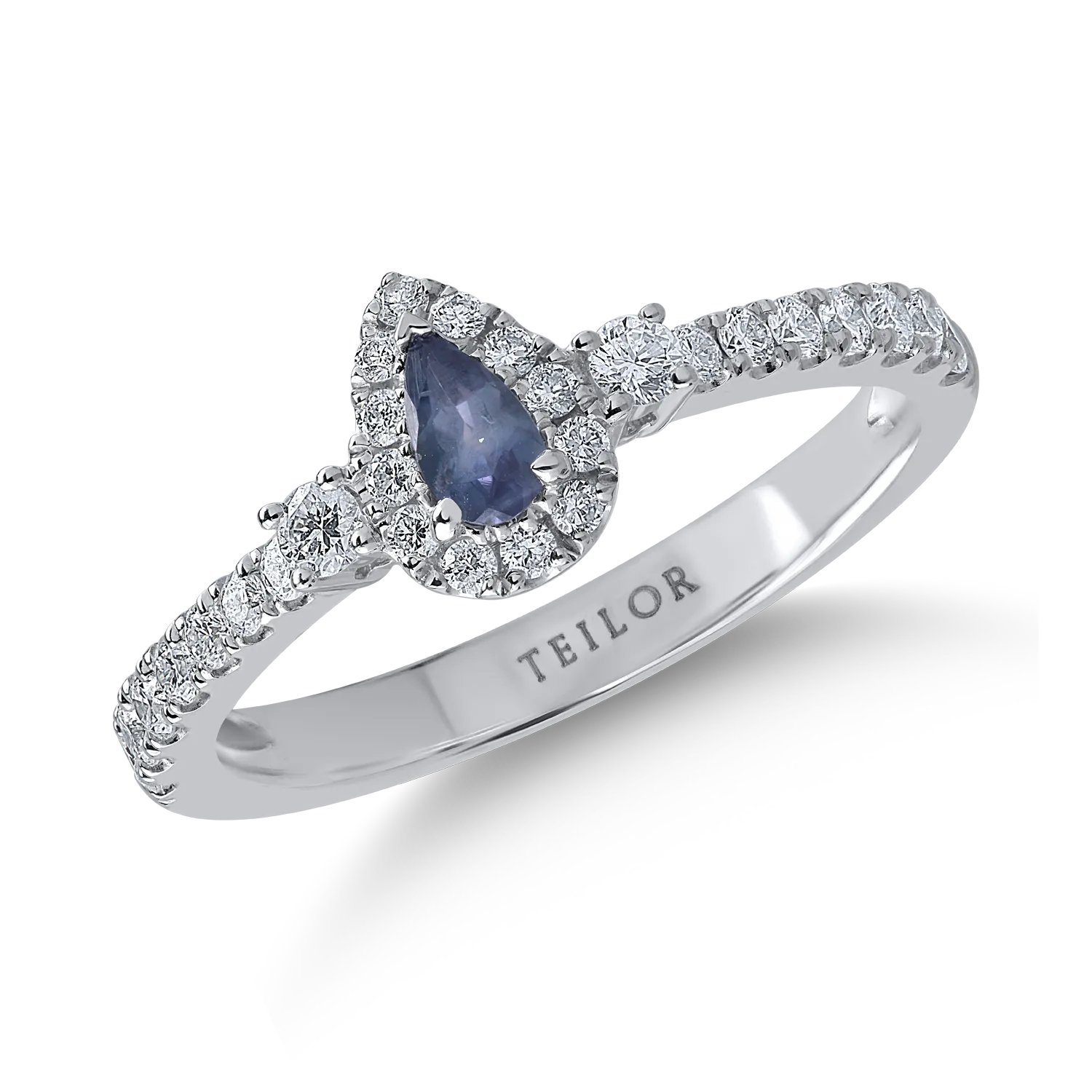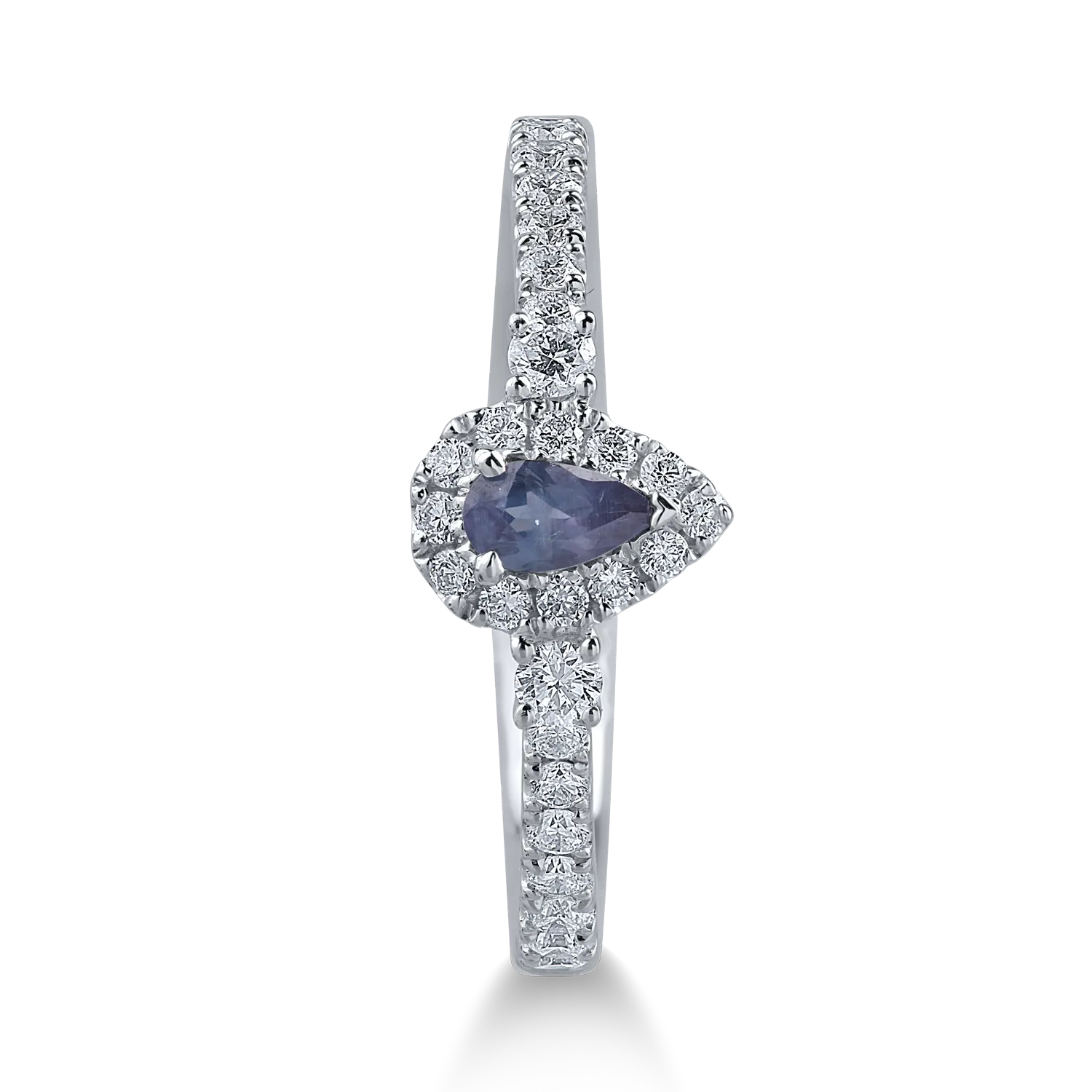 Inel din aur alb cu alexandrit pear de 0.19ct si diamante de 0.4ct