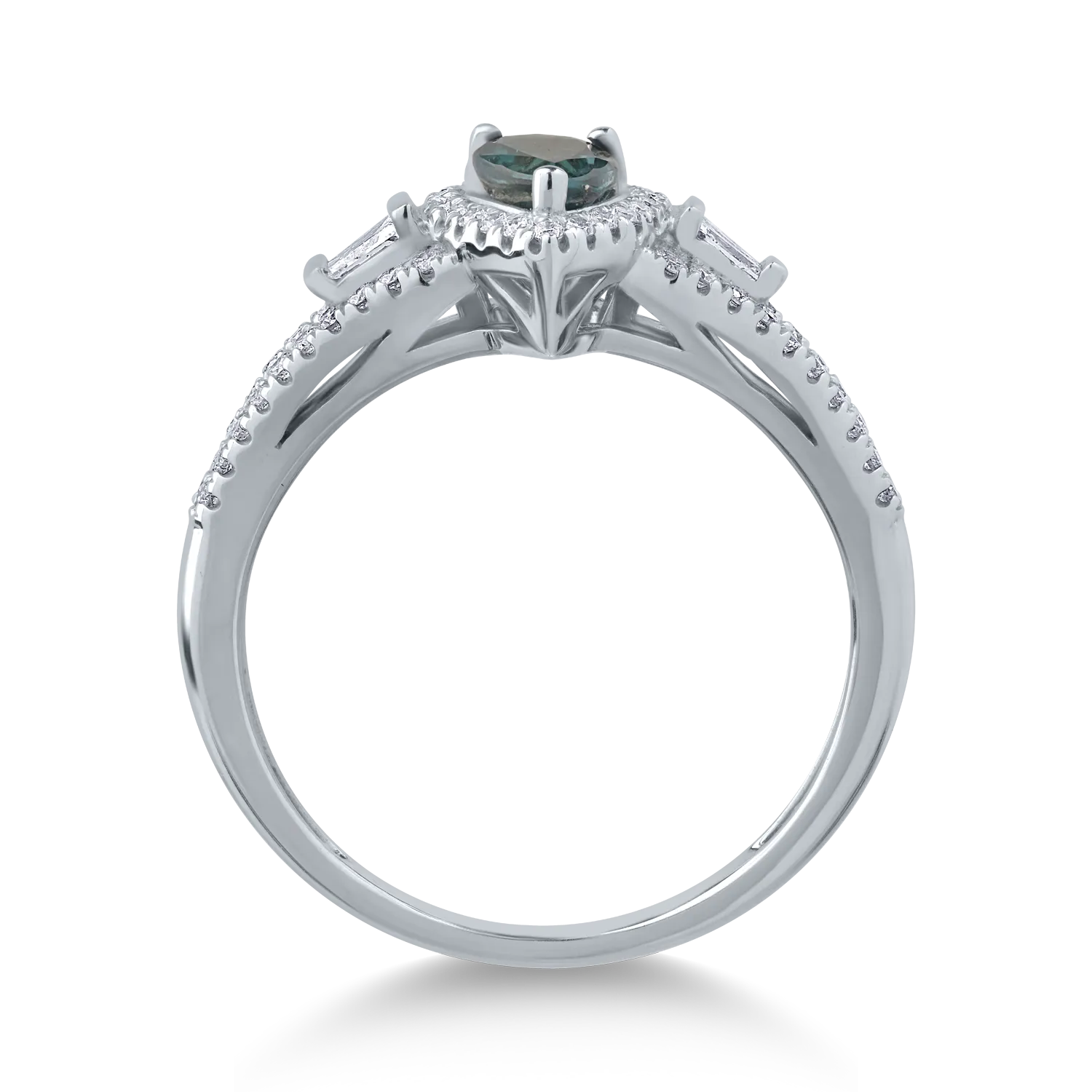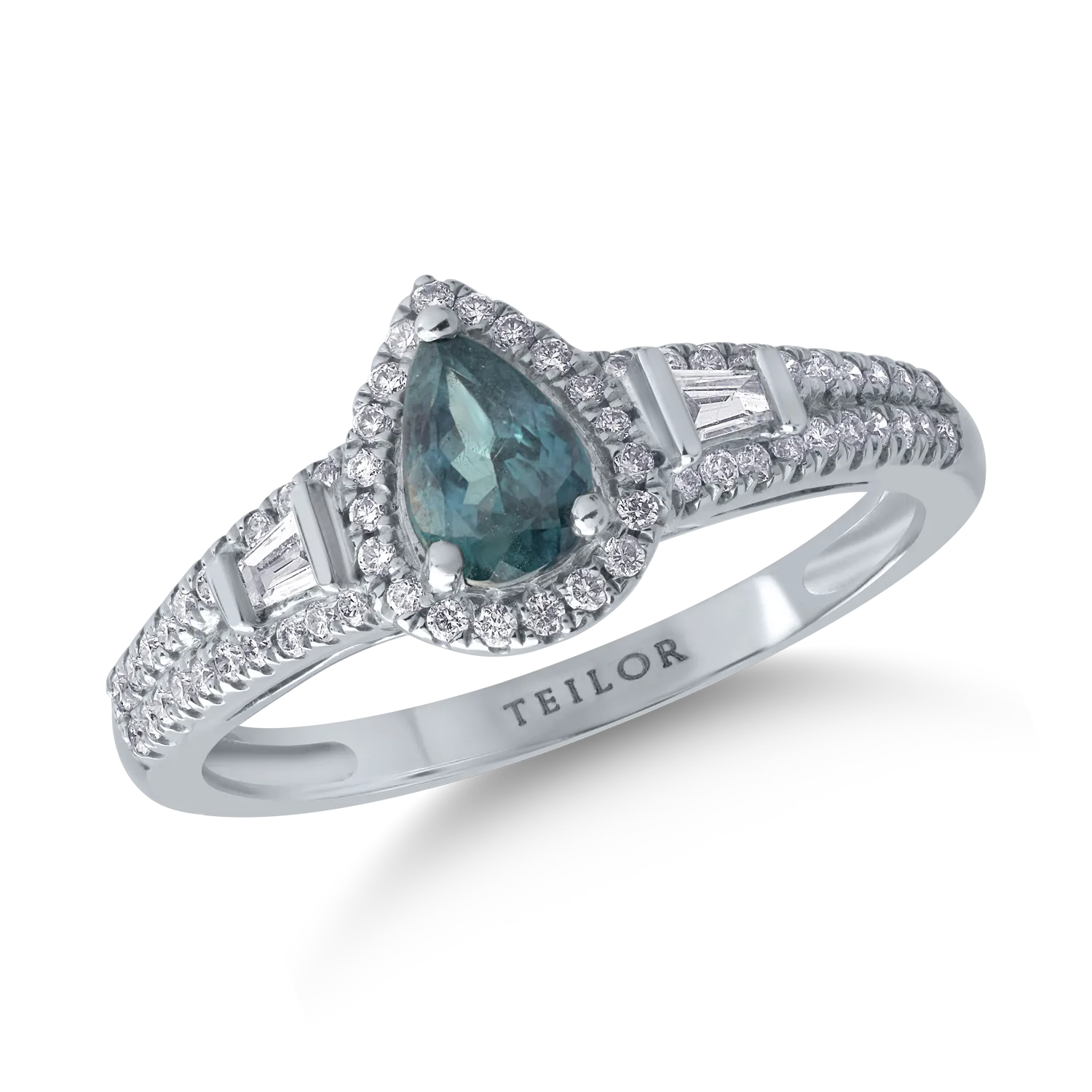 Inel din aur alb cu alexandrit pear de 0.6ct si diamante de 0.3ct