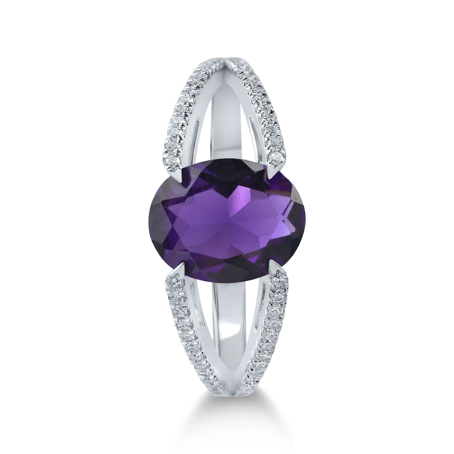 Inel din aur alb cu ametist oval de 1.3ct si diamante de 0.2ct