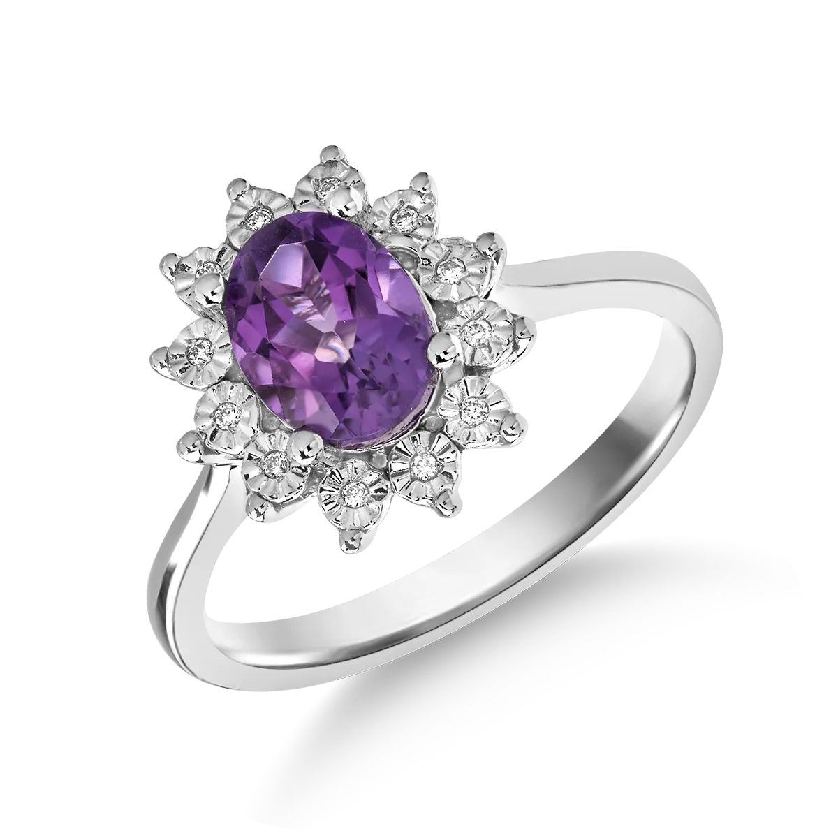 Inel din aur alb cu ametist oval de 1ct si diamante de 0.03ct