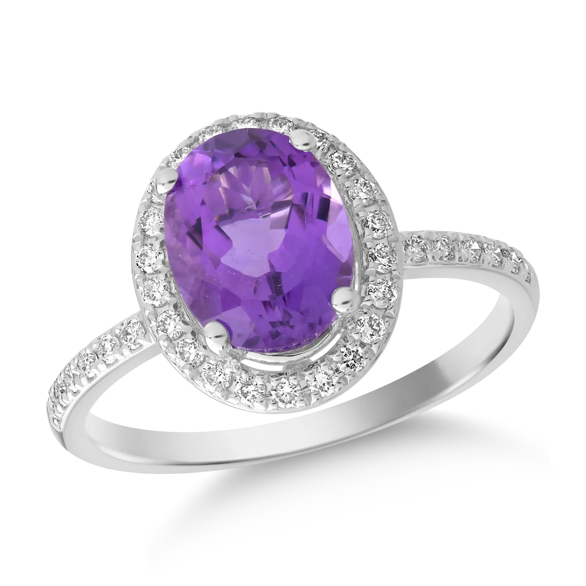 Inel din aur alb cu ametist oval de 2.1ct si diamante de 0.2ct
