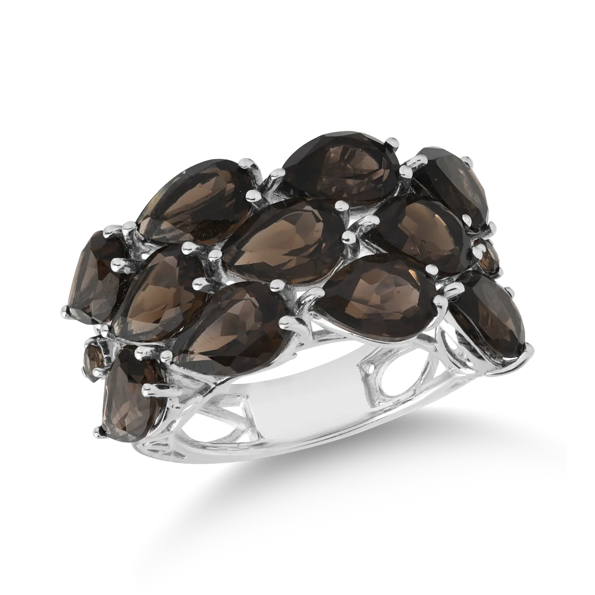 Inel din aur alb cu cuart fumurii pear si rotunde de 7.5ct