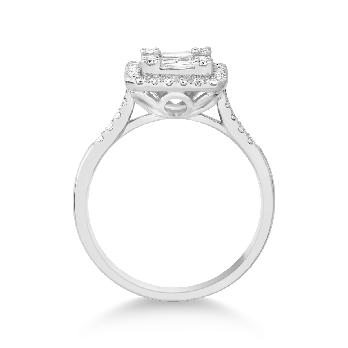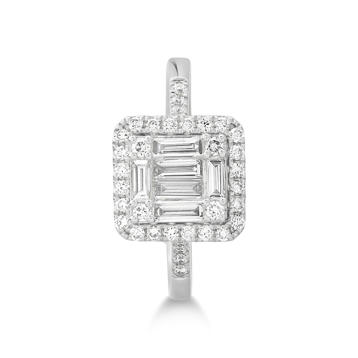 Inel din aur alb cu diamant baguette de 0.4ct si diamante de 0.3ct