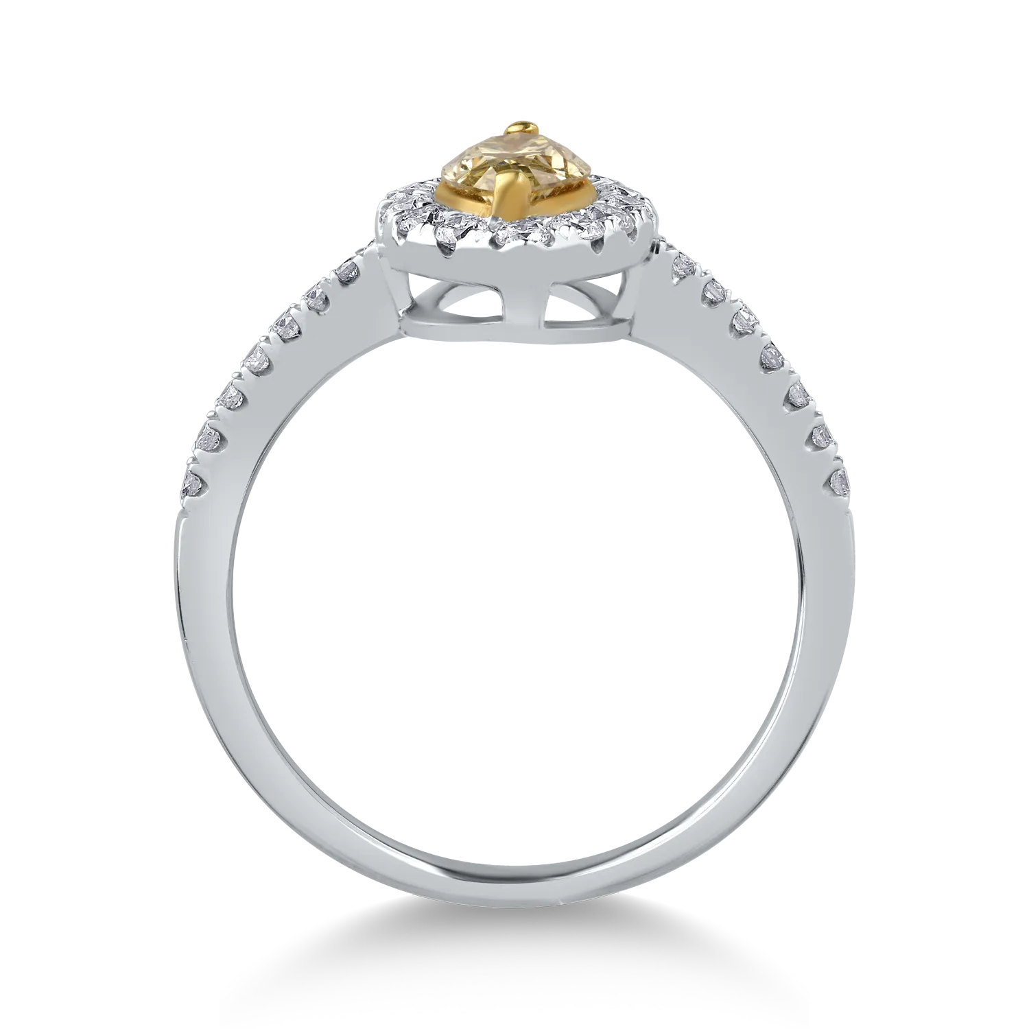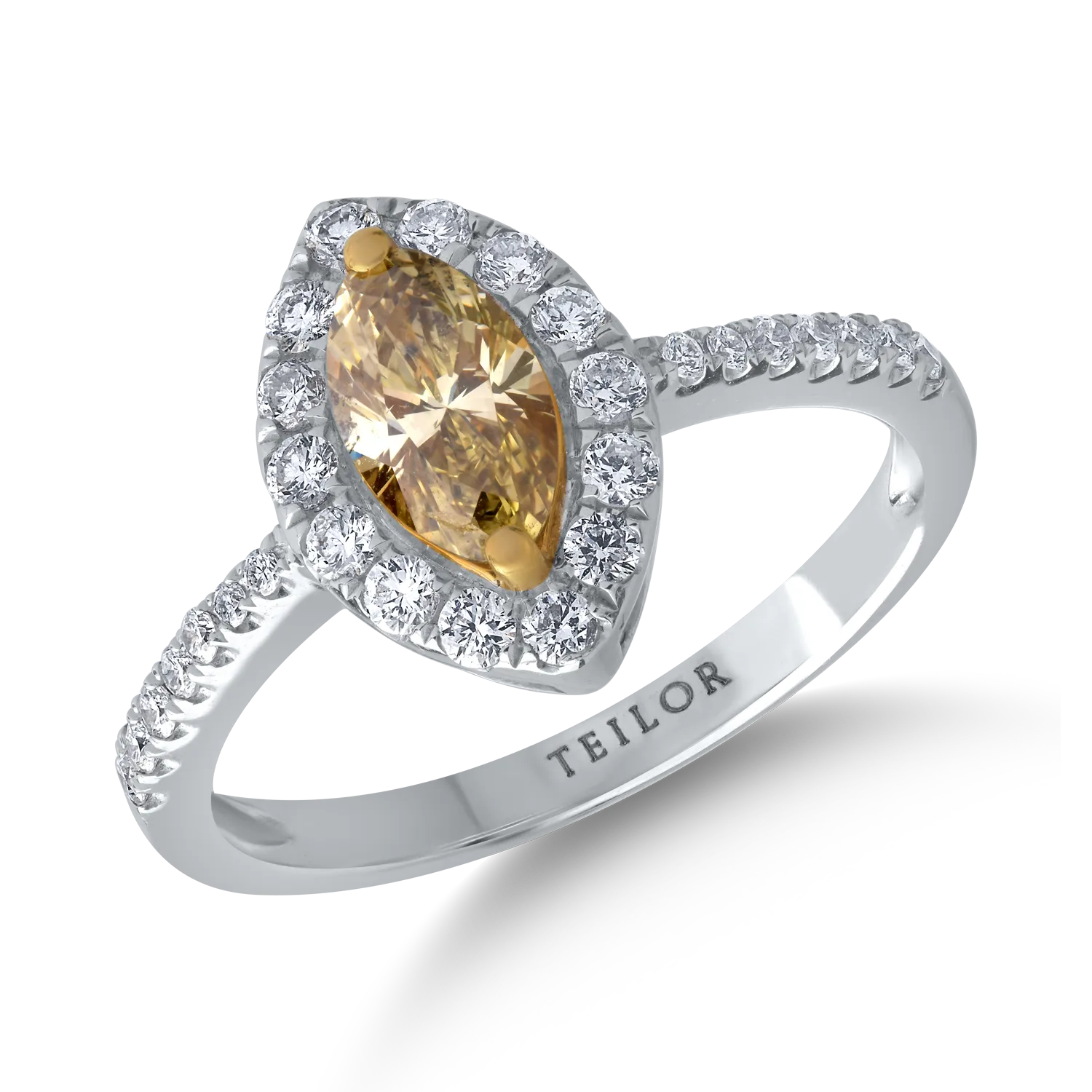 Inel din aur alb cu diamant fancy-multicolor marquise de 0.59ct si diamante de 0.3ct