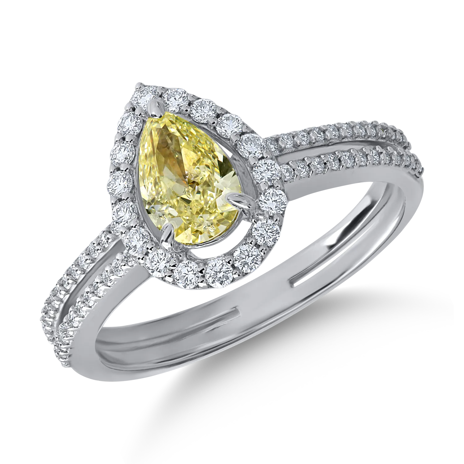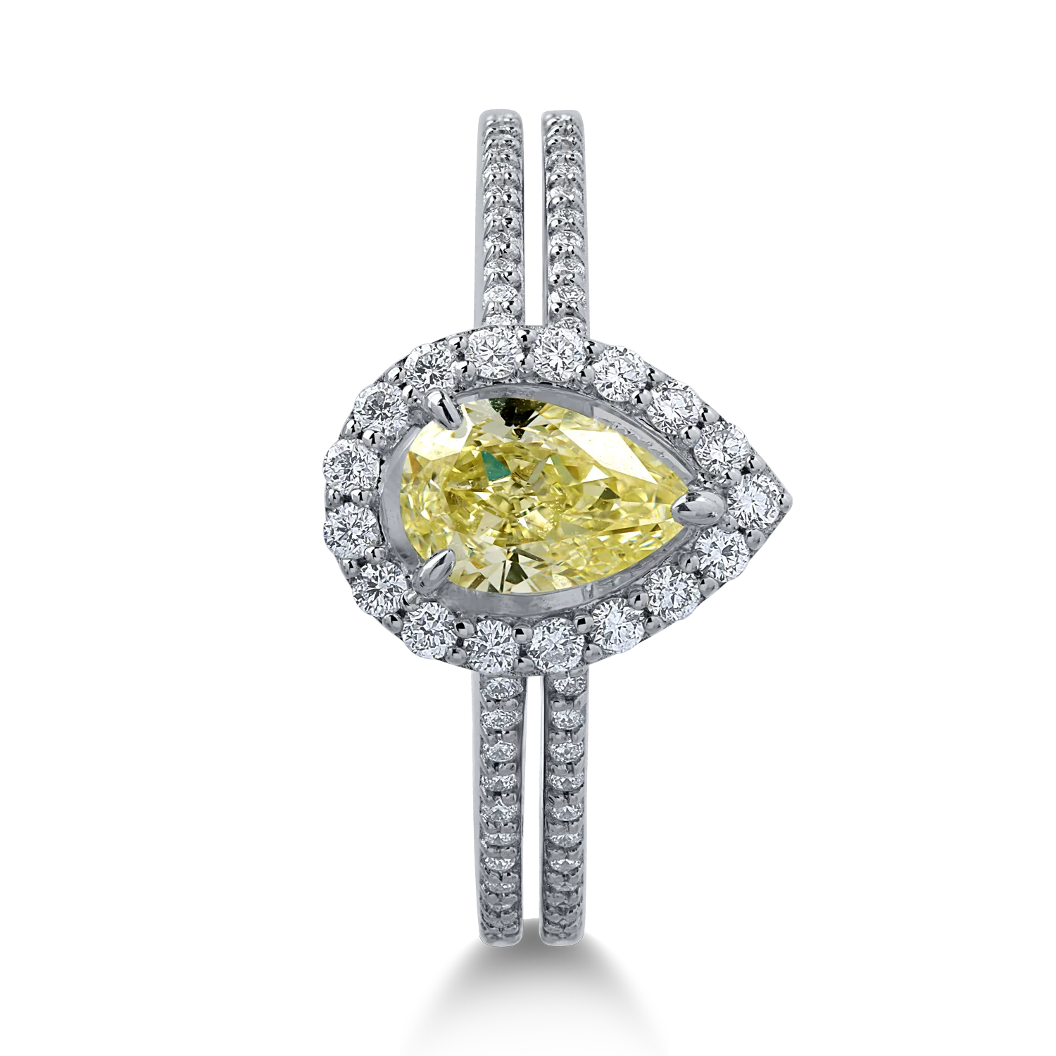 Inel din aur alb cu diamant fancy multicolor pear de 0.7ct si diamante transparente de 0.3ct