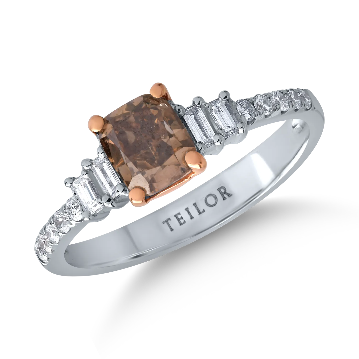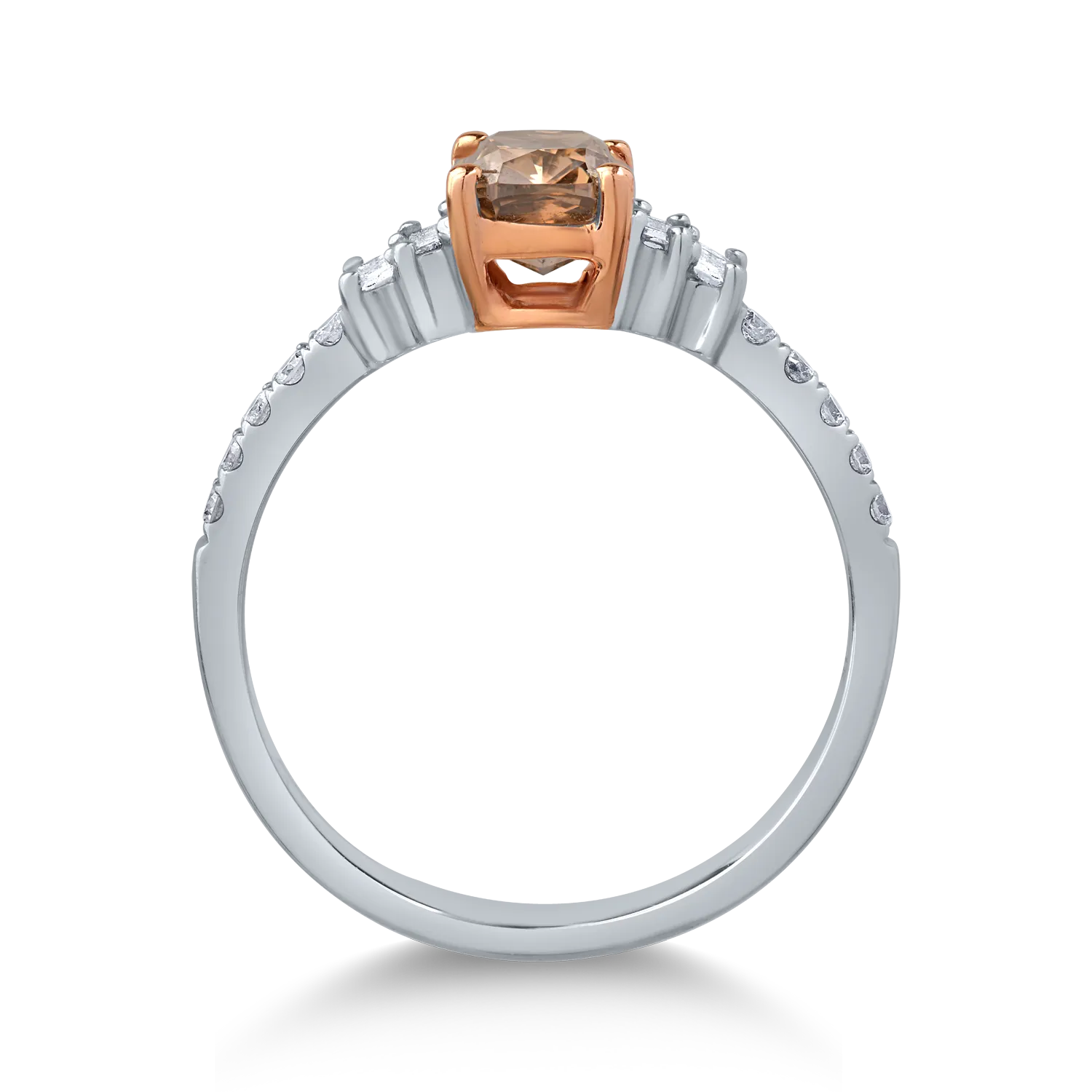 Inel din aur alb cu diamant maro de 1.01ct si diamante transparente de 0.28ct